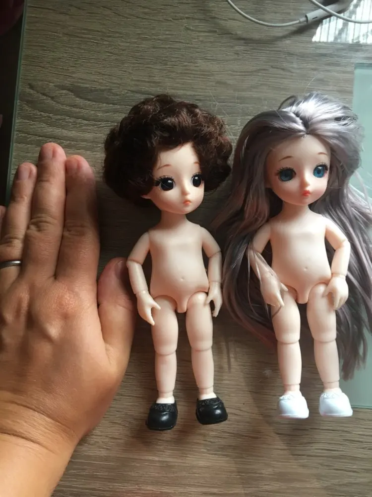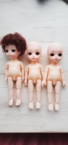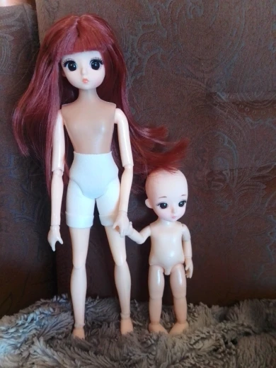 Куклы превзошли ожидания! несмотря на то, что прошивка волос редкая, самих волос более чем достаточно. Тело крепкое. куклы совсем малышки. Я заказала три, пришел маленький пакет, я даже не сразу поняла, что там уместилось три куколки! в целом: пропорции тела соответствуют ребенку двух лет примерно. Отмечу два минуса: глаза заказали голубые, а пришли карие. И второй: волосы пришлось проклеить изнутри силиконом, так как они слегка линяют.