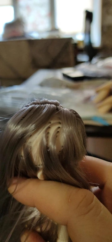 волосы прошиты жидковато, и они немного жирные по длине, придётся отмывать, чтобы не висели соплями. рисовка качественная.