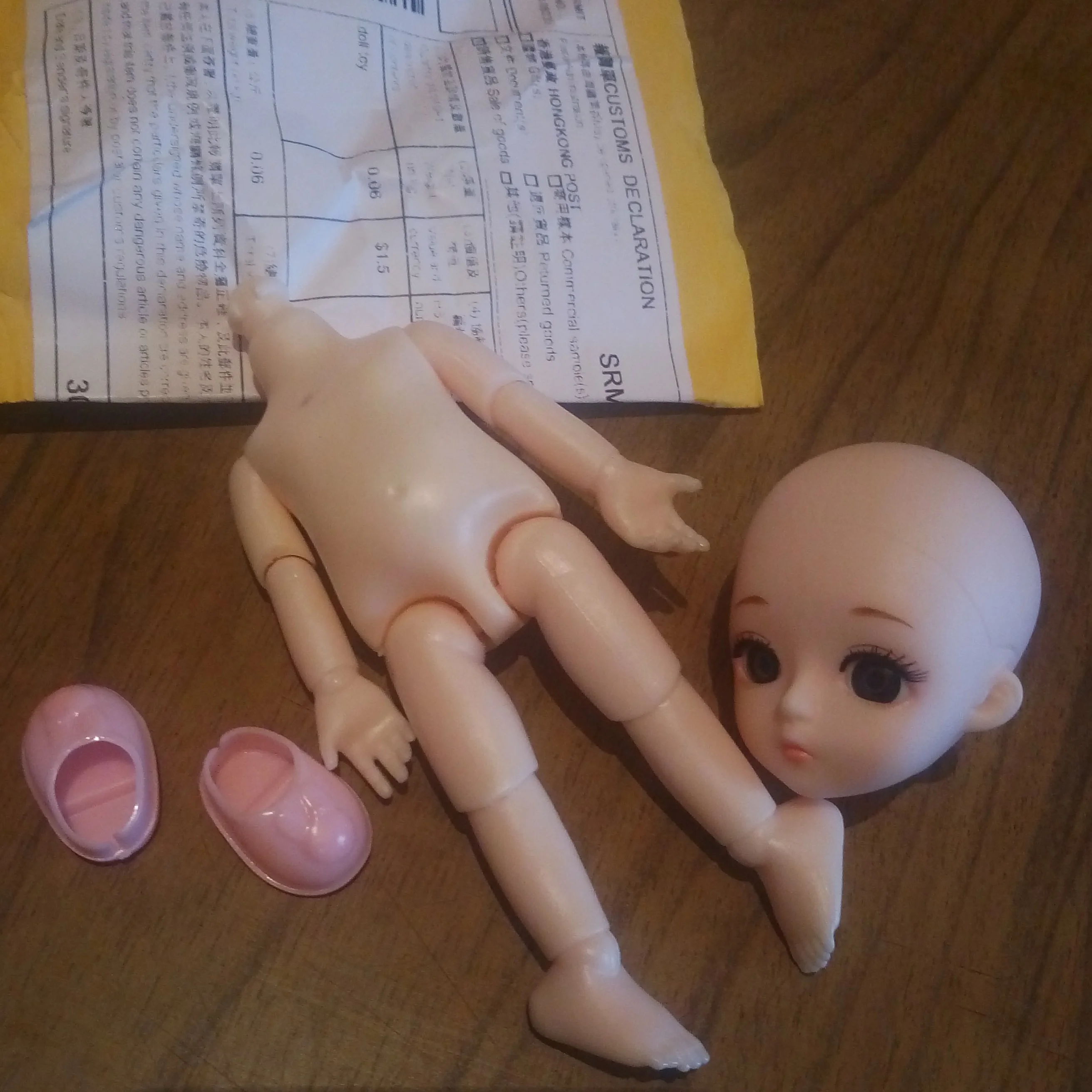 Куколка замечательная, заказывала без волос для прошивки (позже покажу результат с волосами). Гнутся ручки и ножки. Но самое главное - скорость доставки впечатлила! 8 дней с момента отправки и до получения мной в Тюменском районе. Продавец отправил заказ на следующий день, в общении не возникло необходимости