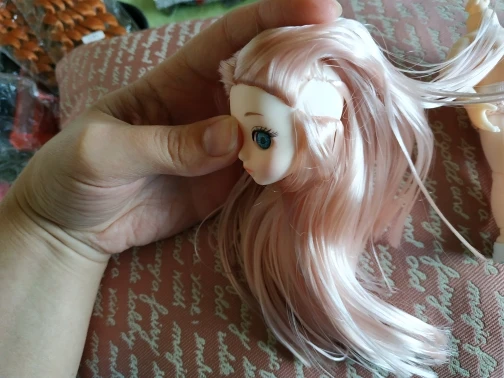 Очень милая малышка, волосы прошиты довольно хорошо, немного неровно пострижены, исправим. Тело прочное, пластик приятный, не тонкий. Суставы тугие, крепление на фото. Продавец отправил быстро. Однозначно рекомендую! В отзывах пишут про туфельки в подарок - мне не положили. Жаль...