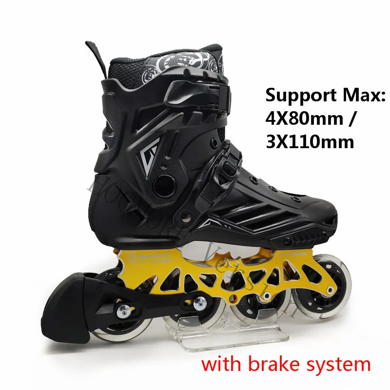Эти слаломы имеют хорошее качество и подходят для начинающих и продвинутых игроков; Вы можете выбрать, чтобы купить коньки с/без тормозной системы, они с разной ценой. Мы установим ABEC-7 подшипники уровня для вас; Рама для катания на коньках плоского типа; Для размера 35-39 мы установим все колеса 76 мм для каждого катания; Для размера 40-46 мы установим все колеса 80 мм для каждого скейта; Если вы хотите установить 76 мм/80 мм Высокие Низкие колеса, вы можете оставить нам сообщение.