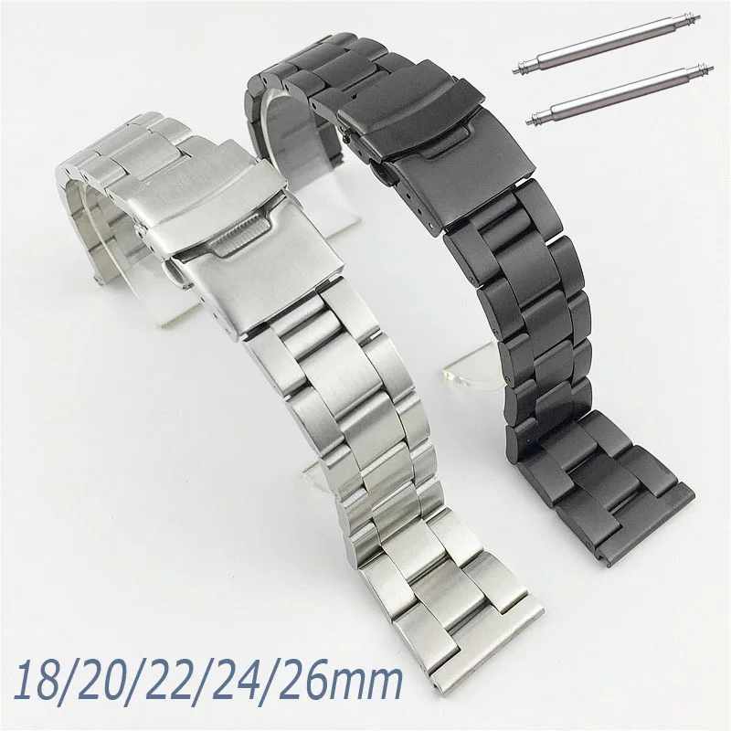 Сменный ремешок для часов из шелка для дайвинга, 18 мм, 20 мм, 22 мм, 24 мм, 26 мм, ремешок для часов с двойной пряжкой, металлический браслет из нержавеющей стали