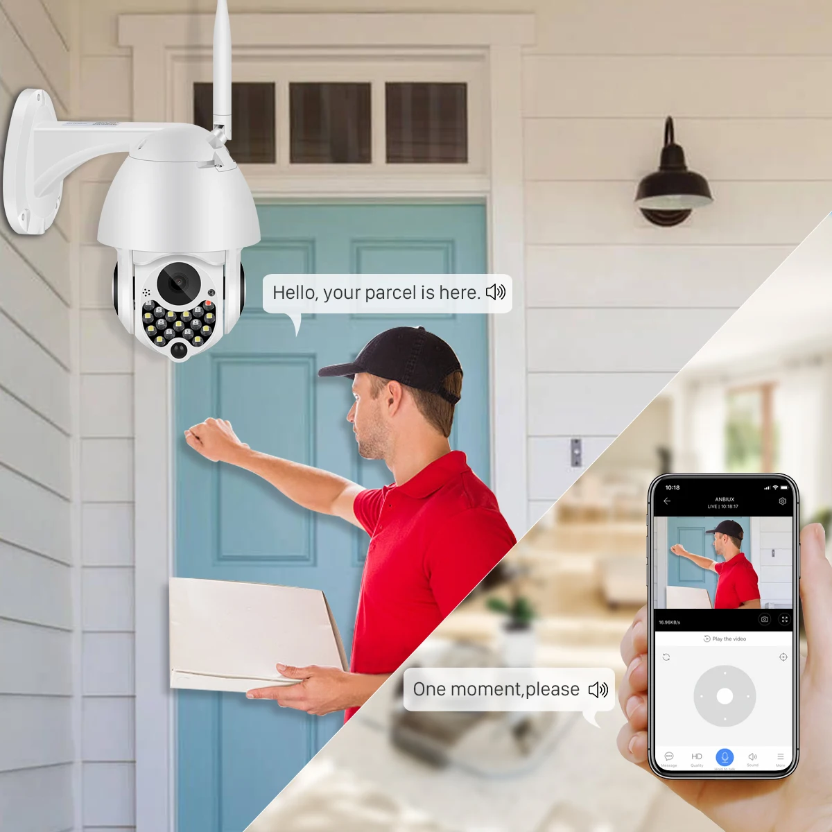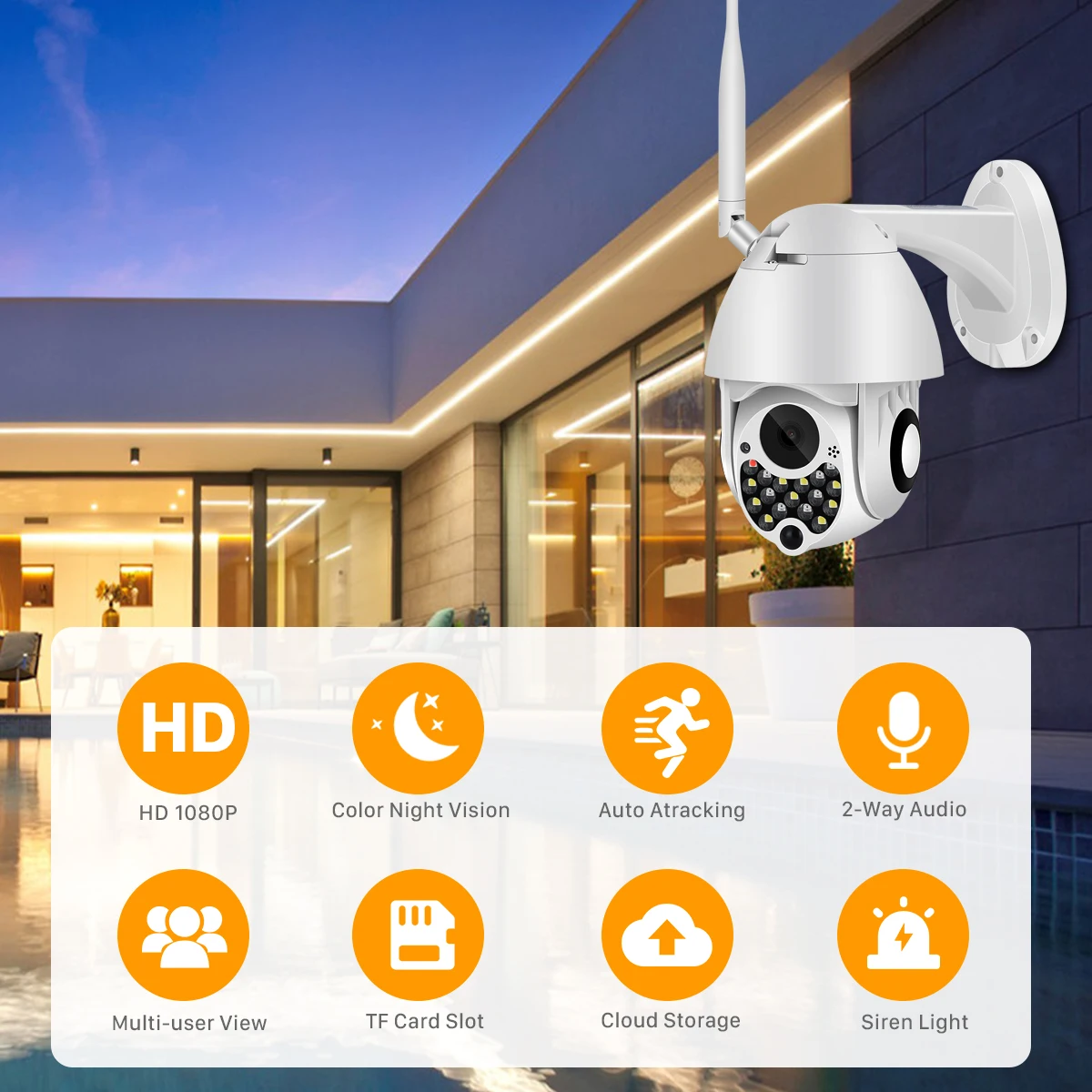 Купольная камера ПНН с автоотслеживанием, уличная лампа с сиреной, 1080P, Wi-Fi, 2 МП, 4-кратный цифровой зум, для домашней безопасности