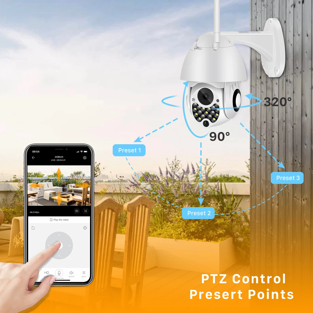 320 ° PTZ панорамирование/наклон вращение по вертикали 90 ° может контролировать угол вращения через приложение YCC365 Plus. Он может настроить максимум 8 предустановленных точек