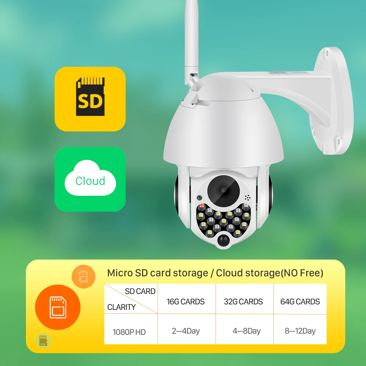 Поддерживает TF карту до 128 ГБ и предоставляет Облачное хранилище (необходимо оплатить дополнительные расходы), вы можете выбрать либо или оба, чтобы сохранить ваши записи и избежать риска потери видео с карты.