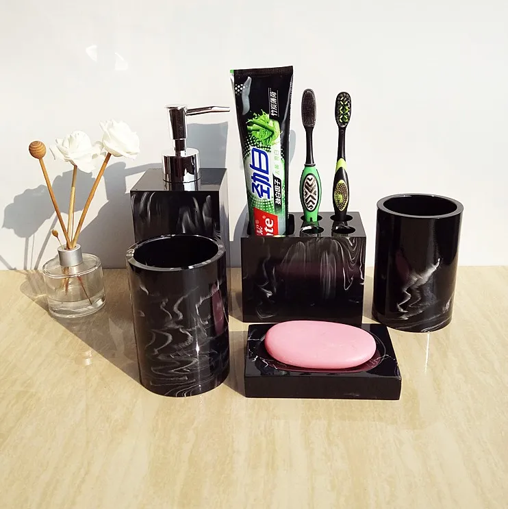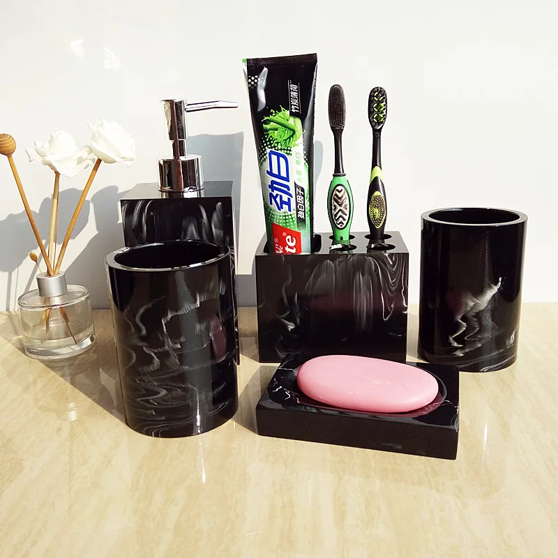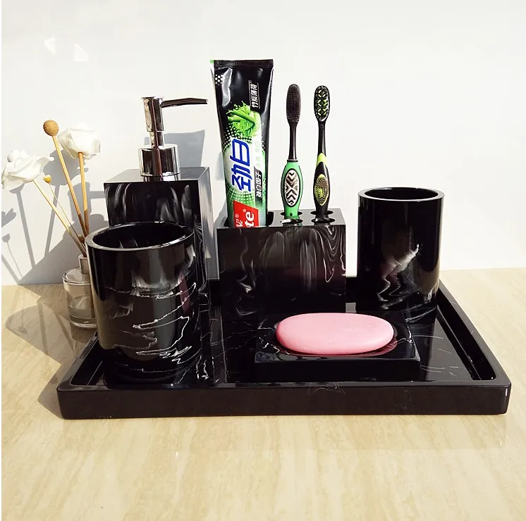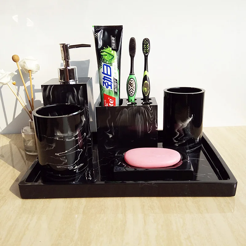 Набор аксессуаров для ванной комнаты 5 шт.6 шт., поднос из искусственного мрамора и смолы, мыльница, держатель для мыла, зубных щеток, дозатор мыла