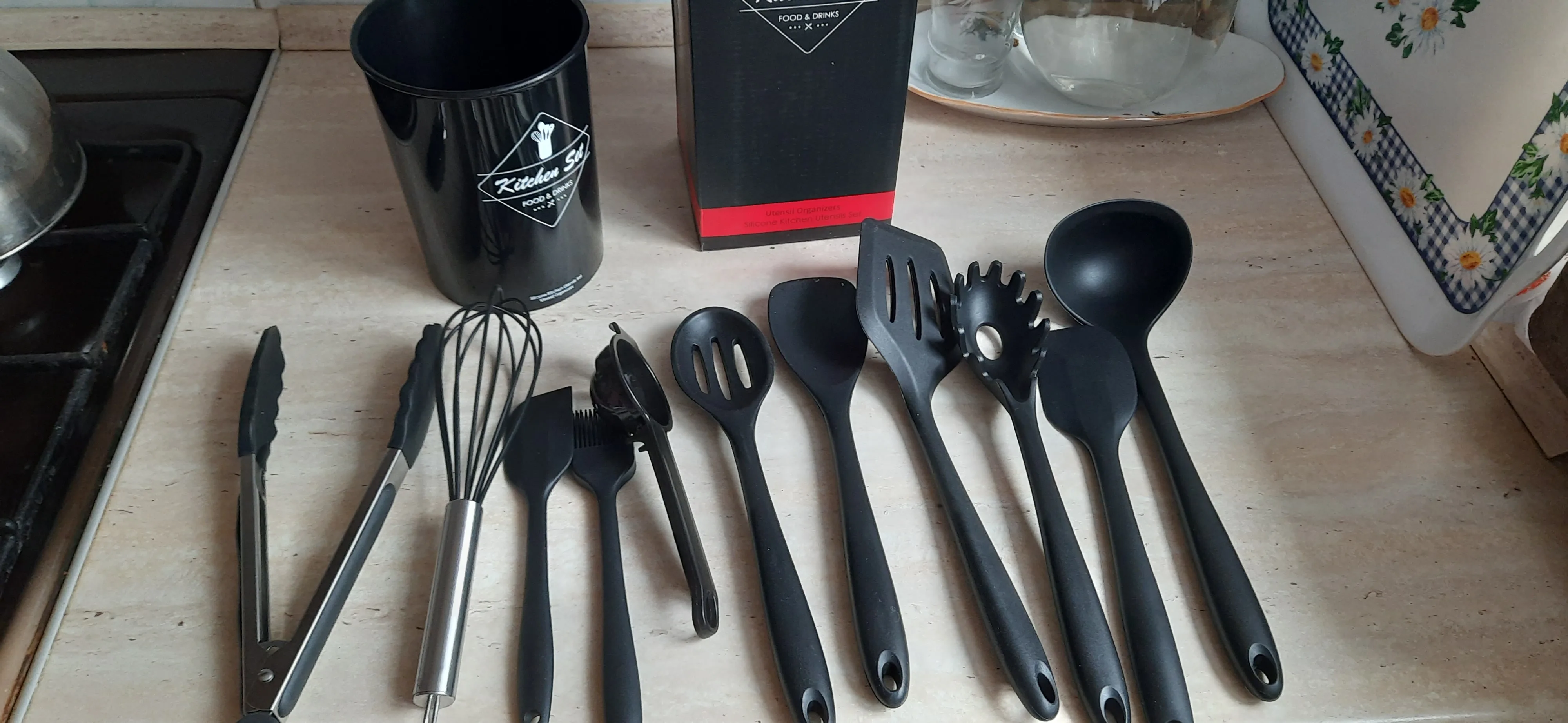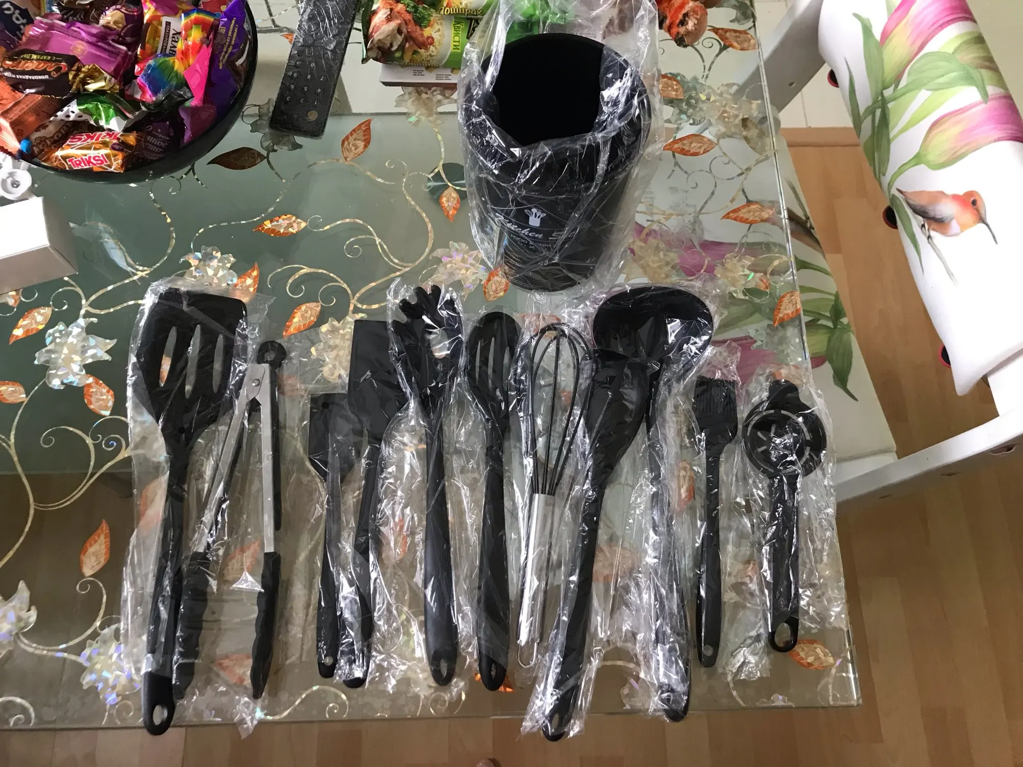 I love them! All items are from normal silicone, quality is best that i can find here. I recommend this set to anyone who want full-set of good quality cooking tools, that's really awesome! My set was black, but i asked seller about that in comments - for me it was important to receive black items (not grey). Thank you! For the seller: if you will have this tools not in the set, it would be nice, because i think I'm not alone who need some of items in count 2-3, but for all another it would be enough have just one.