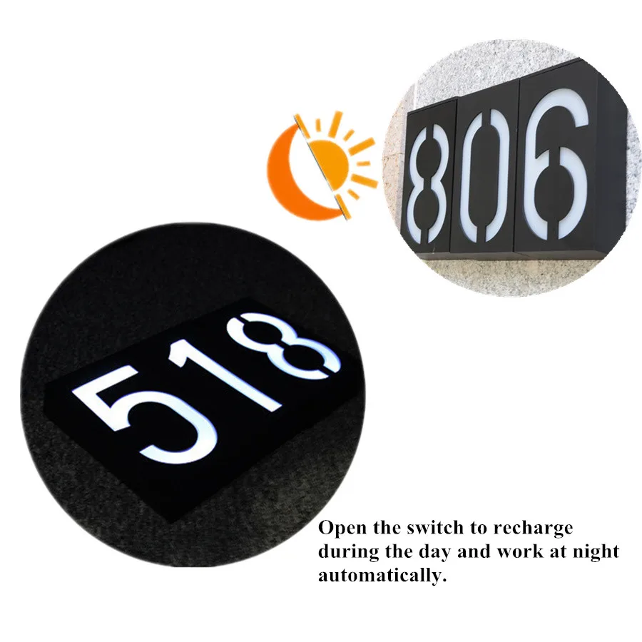 Цифровой светильник для номера дома, светодиодный, на солнечной батарее, водонепроницаемый