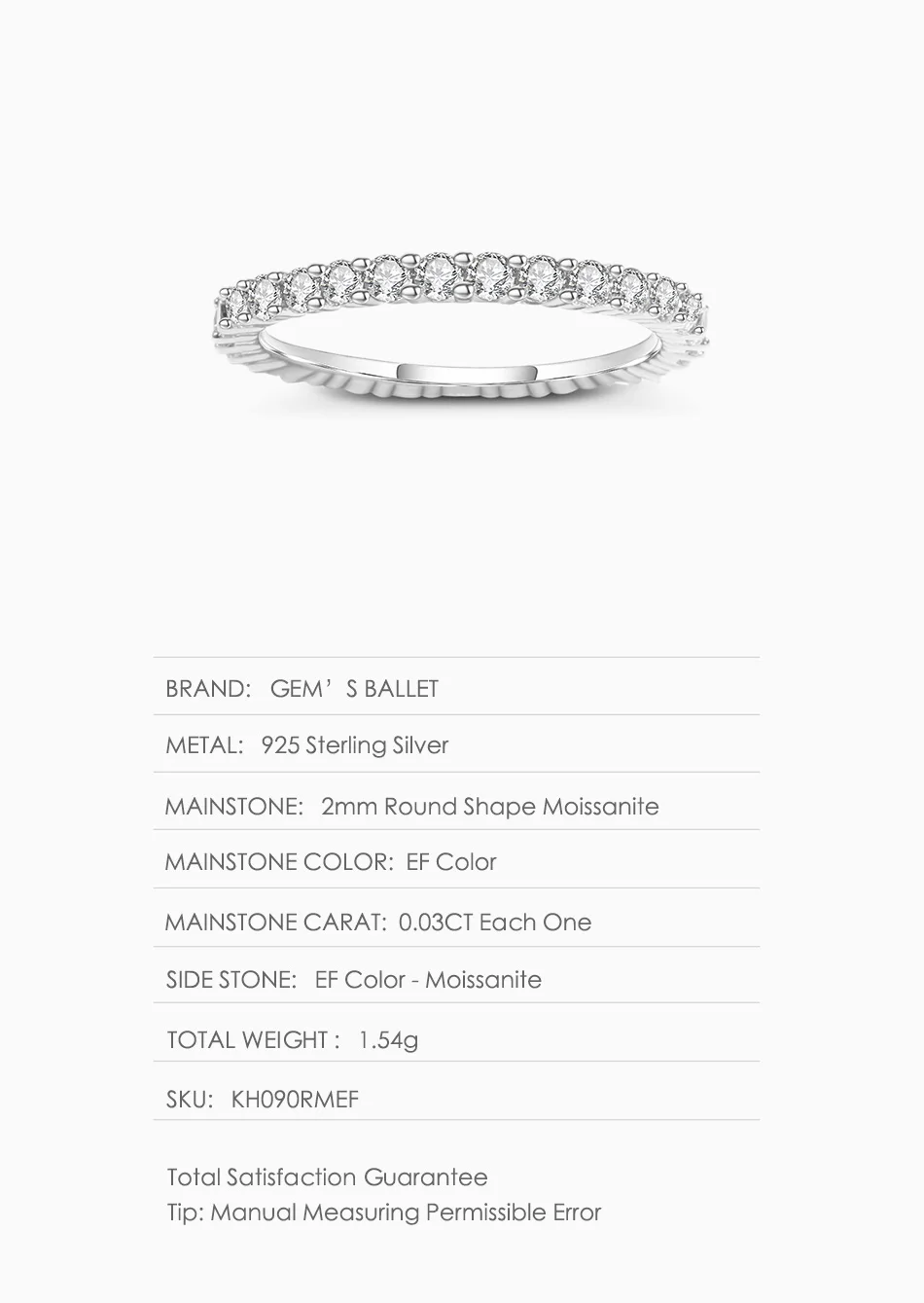 Женское свадебное кольцо GEM'S с муассанитом, обручальное кольцо из стерлингового серебра 925 пробы с муассанитом, 0,87 карата, 2 мм