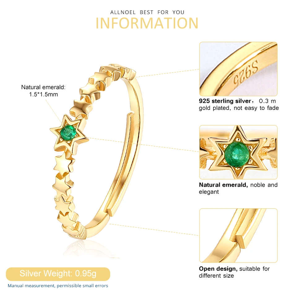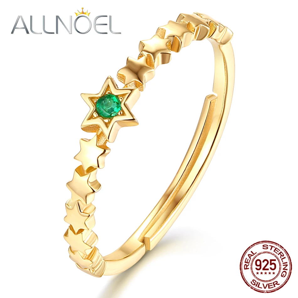 ALLNOEL Стерлинговое Серебро S925 пробы, 100% натуральный изумруд , дизайн со звездой, Подарок на годовщину в виде колец для женщин, хорошее ювелирное изделие, Новинка