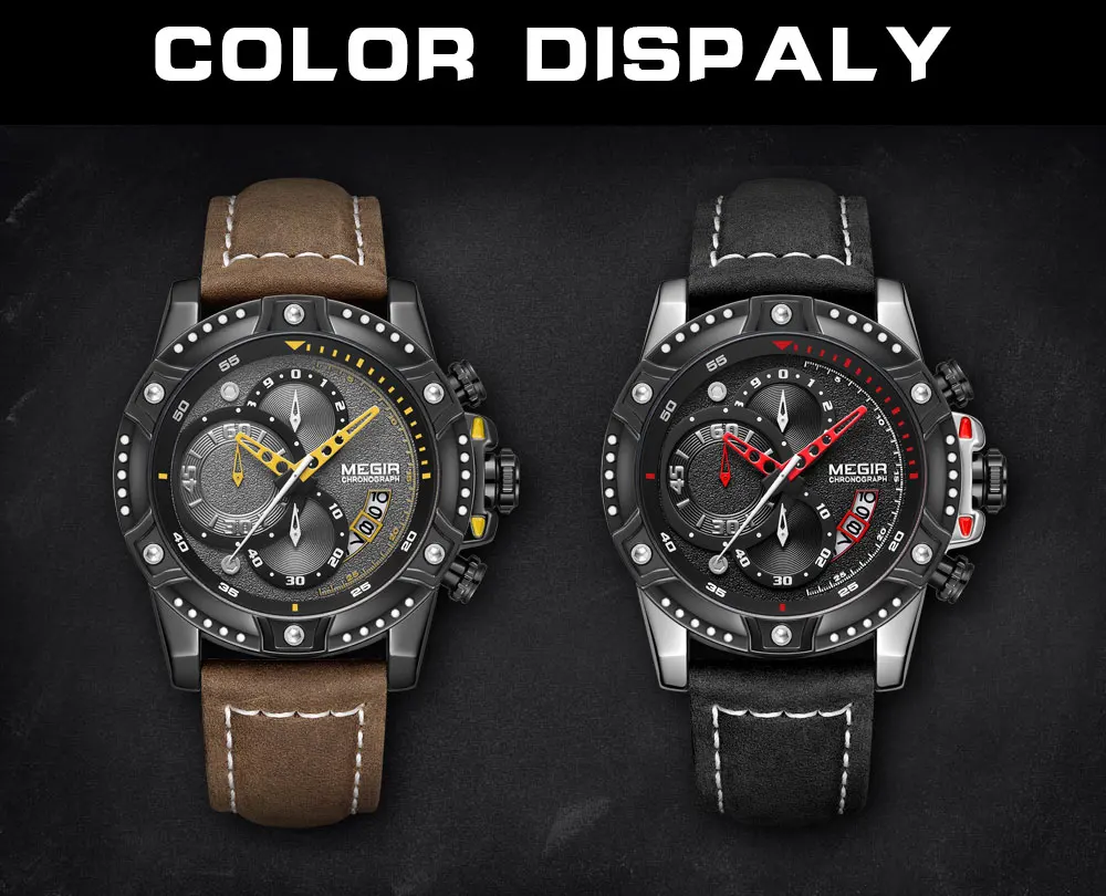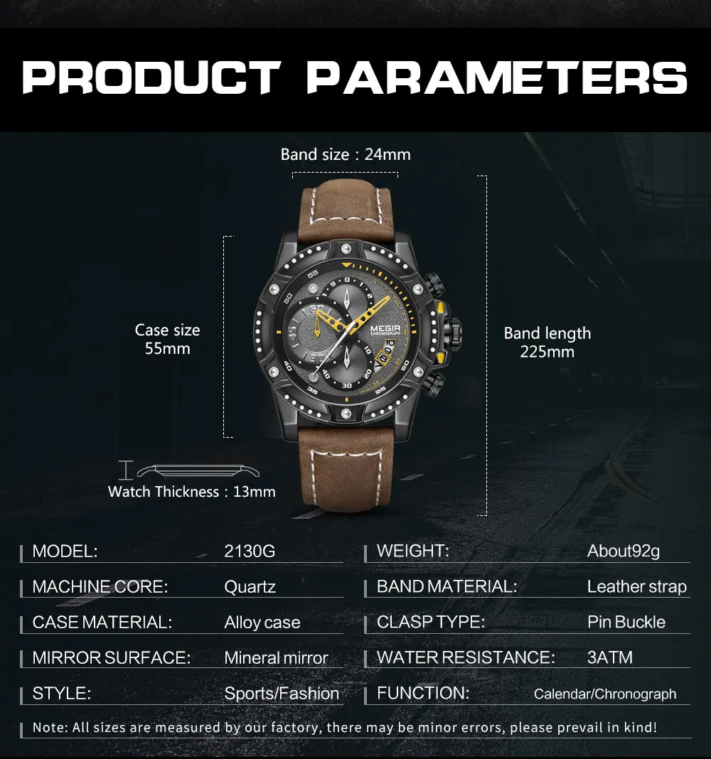 Мужские повседневные часы MEGIR, роскошные брендовые кварцевые наручные часы с хронографом и кожаным ремешком, армейские спортивные часы, 2130