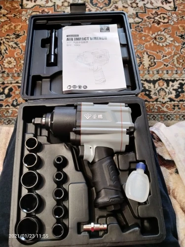 пришло быстро,гайковерт качественный,максимальный крутящий момент 275н.м при шланге 12мм