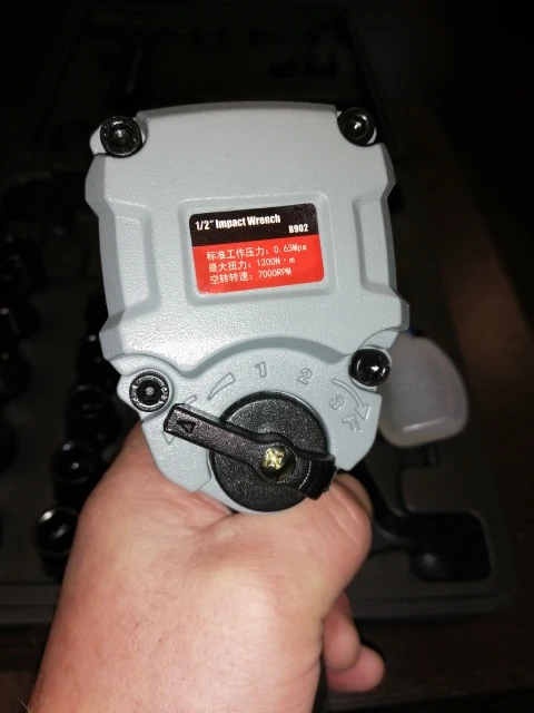 Заказ пришел очень быстро.Ящик в углу сломан,как и у всех.Компрессор Кратон ,ресивер 50 л,шланг внутренний диаметр 8 мм,колёсную гайку,закрученную от руки откручивает легко,закрученную от "ноги" не откручивает совсем никак.Возможно,шланг с внутренним диаметром 10 мм ситуацию и исправит.Штуцер из комплекта посадил на паклю.Все режимы работают,но момент 1200Нм мне кажется завышен,т.к туже колёсную гайку закрученную пистолетом на 3 режиме в -ручную откручиваю не напрягаясь.Опять же возможно ,что все дело в шланге 8мм.
