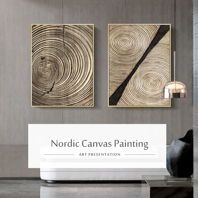 Абстрактная картина с кольцами под дерево, Постер в скандинавском с...