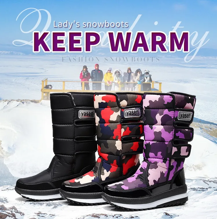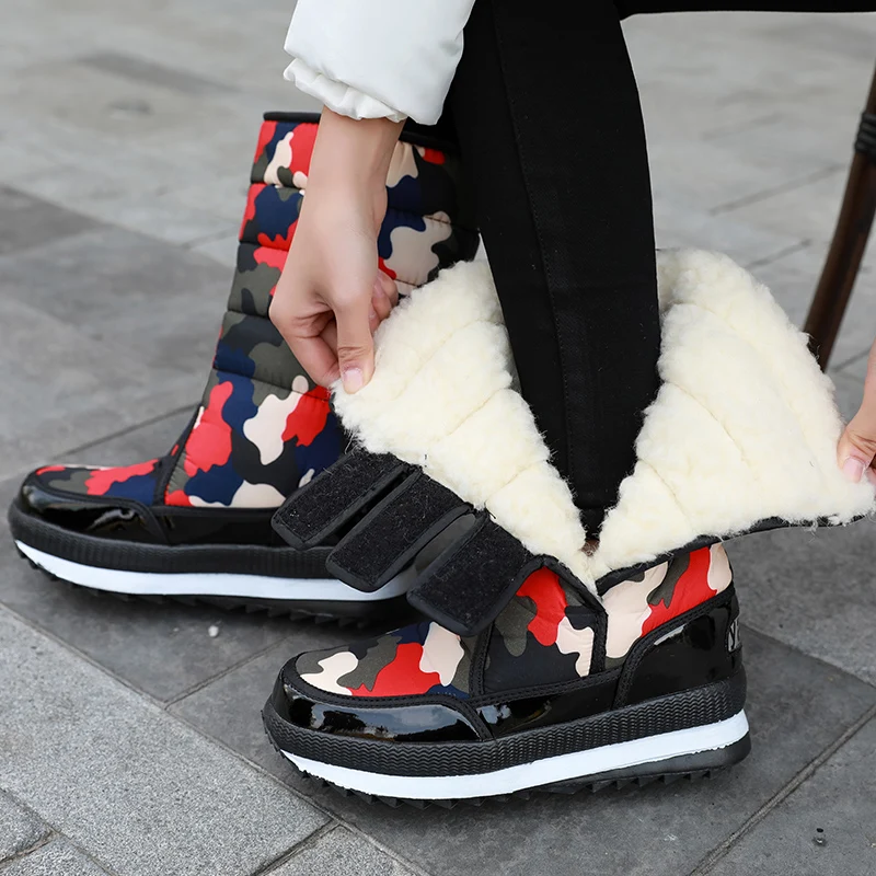 Женские зимние ботинки на платформе, зимние ботинки на толстом плюше, водонепроницаемые Нескользящие ботинки, женская зимняя обувь, теплые меховые сапоги для женщин