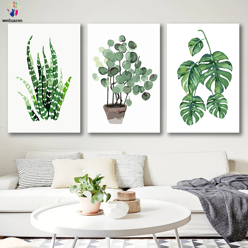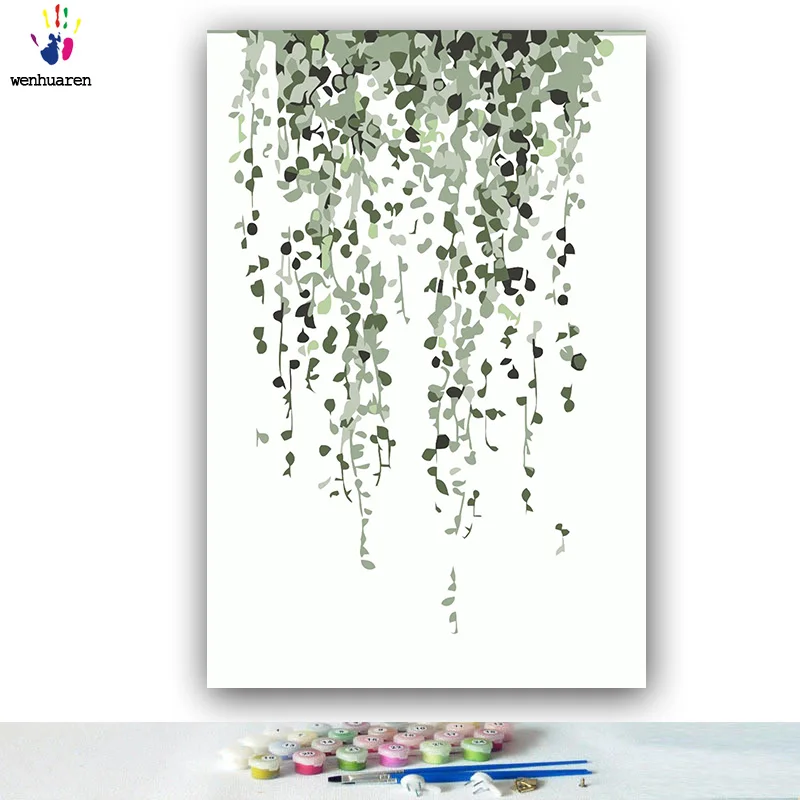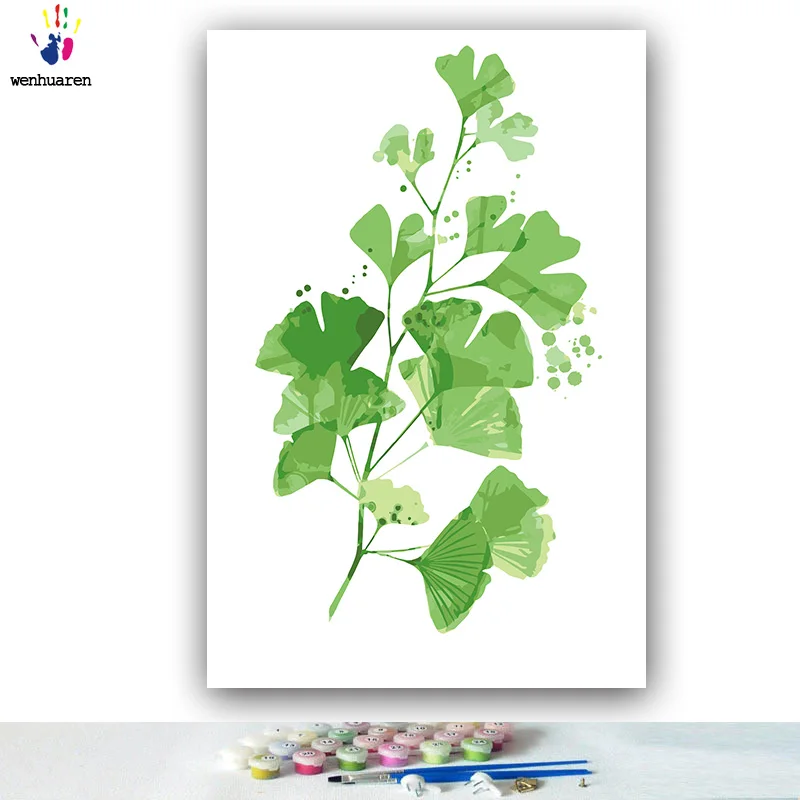 DIY картинки для раскраски по номерам с цветами, акварельные листья, растение, иллюстрация, рисунок, живопись по номерам, обрамление дома