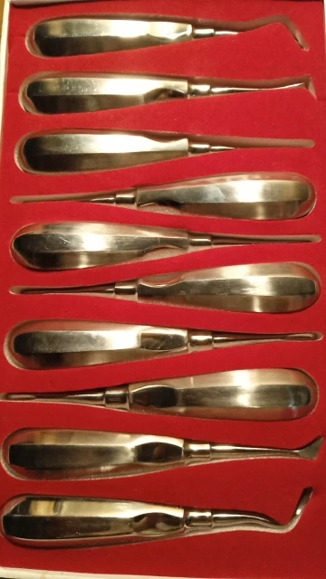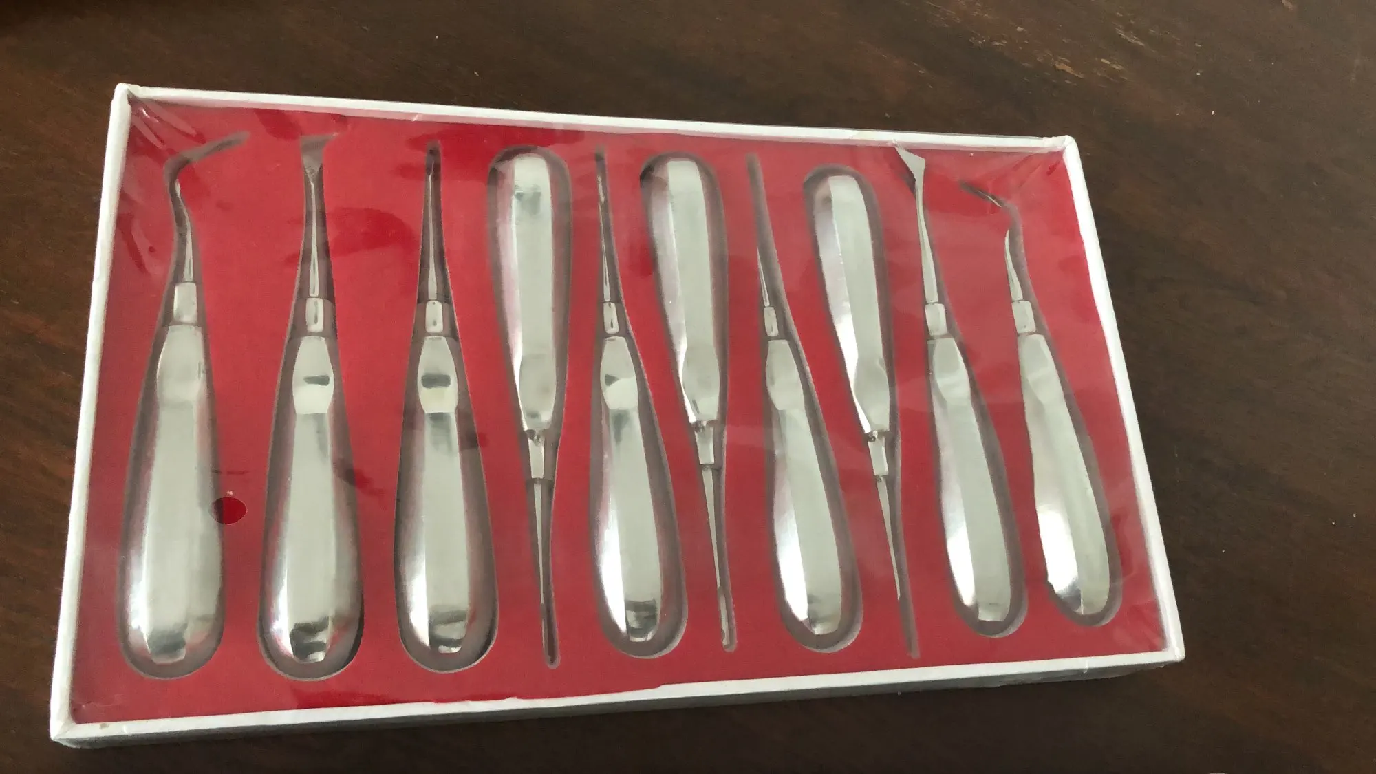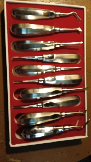 может я не правильно прочитала, но на металл не похоже, ручки внутри полые, не знаю, на сколько хватит инструмента, некоторые совсем не заточены, под десну не влезут-толстые, придётся затачивать самим. Доставка супер быстрая 1,5 недели до Костромы. Коробка без крышки, но упаковано всё было очень хорошо. Теперь главное, чтоб ничего не сломалось и не погнулось