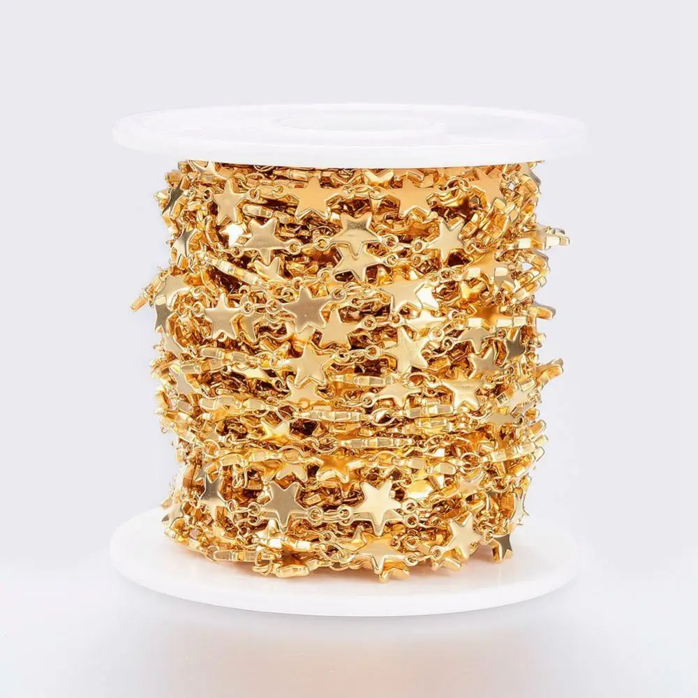 Цепочка из нержавеющей стали 304, 10 мрулон, с припаянными звеньями, с катушкой, для самодельных ювелирных аксессуаров, Золотая и нержавеющая сталь F7