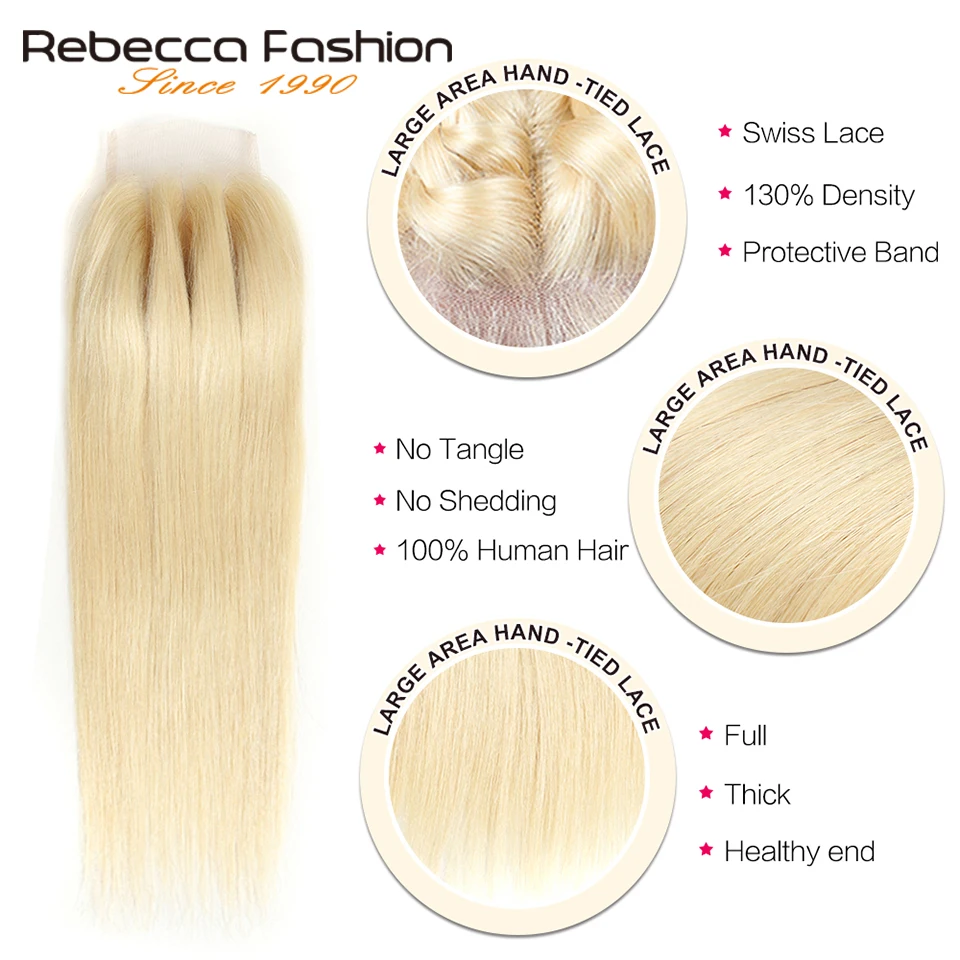 Rebecca 613 пряди с закрытием малазийские волосы плетение пряди прямые Remy человеческие волосы медовый блонд пряди с закрытием