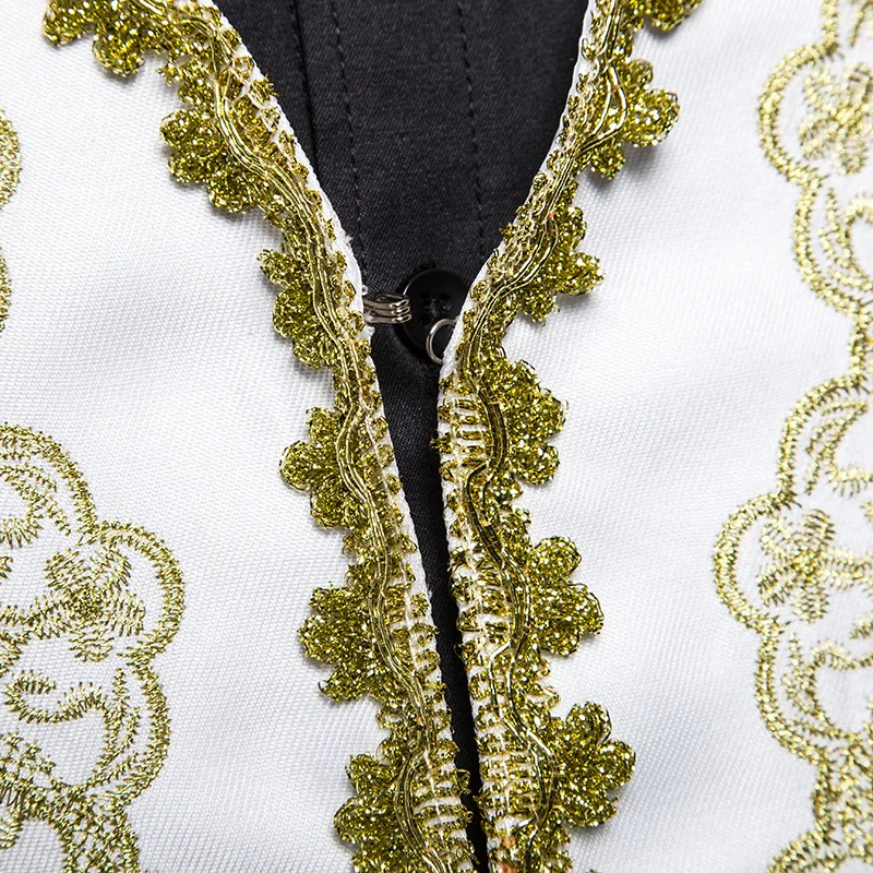 Стильный жилет в стиле барокко с золотой вышивкой, мужской облегающ...