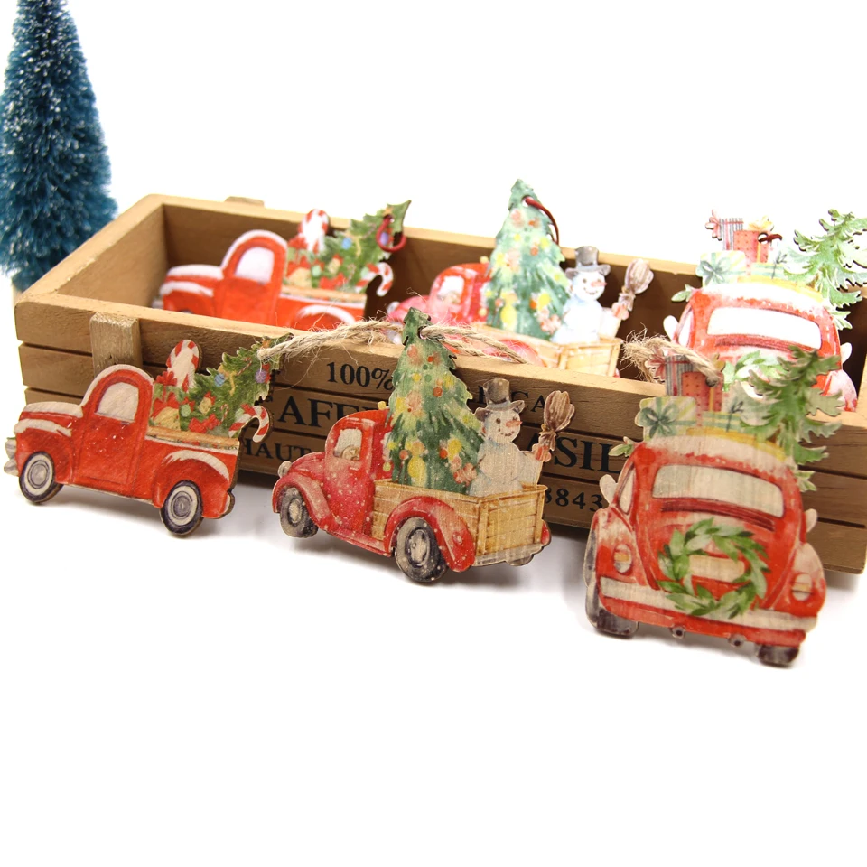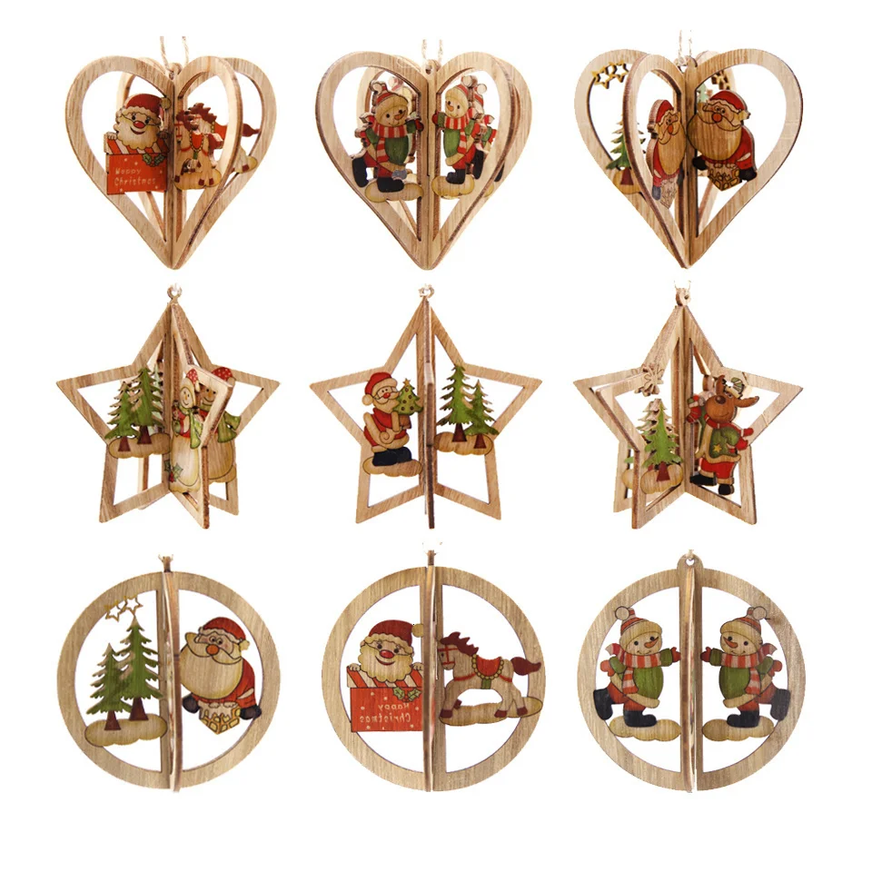 Рождественские деревянные подвески с принтом, 3 шт.лот, подарки из дерева, подвесные украшения сделай сам, рождественские украшения
