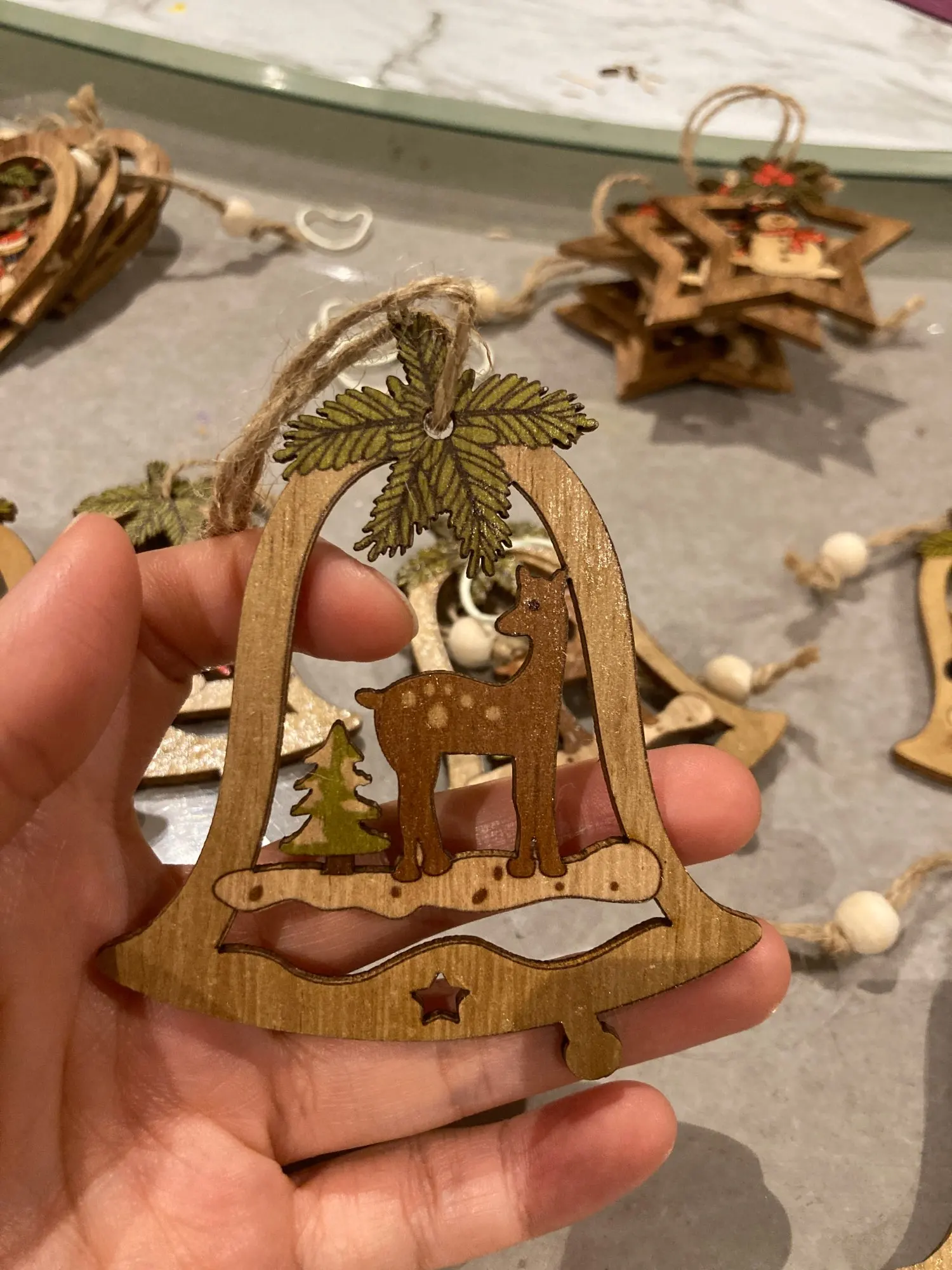 Product sent out quite quickly and received in australia in about 2 weeks time which is fast. Wood feels lightweight and print is nice and clear. Not the complete set that I ordered. Supposed to have a teddy bear in it but was replaced with reindeer instead. Other than that slight chip but not very obvious.