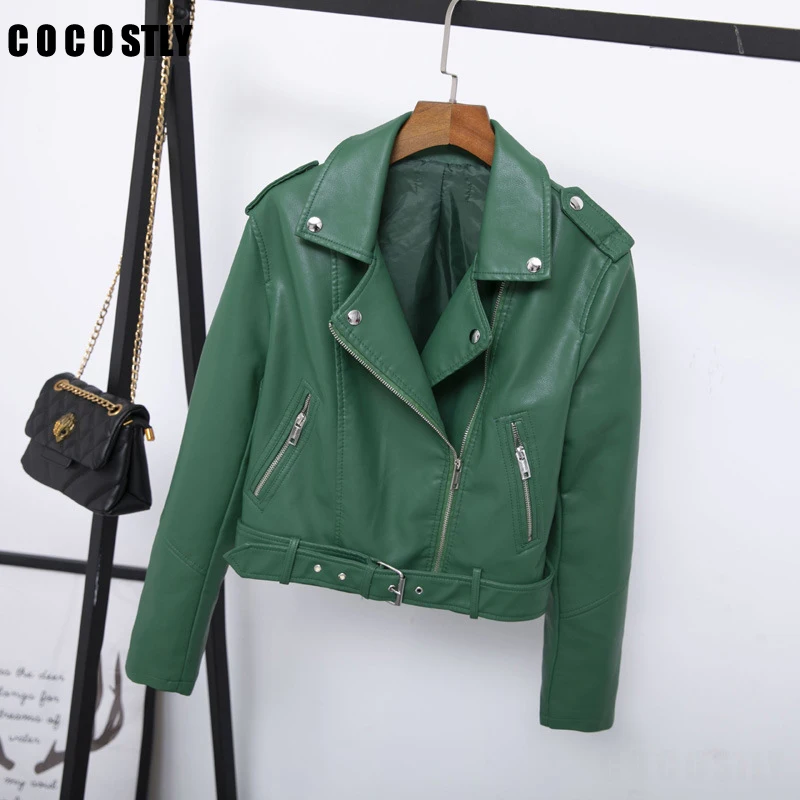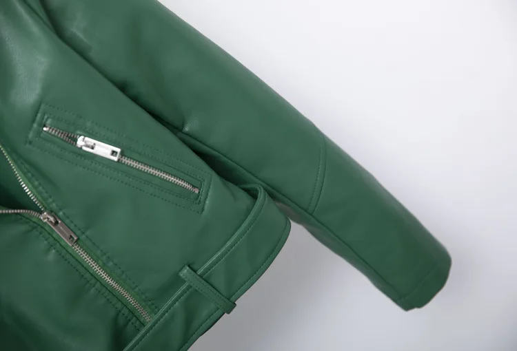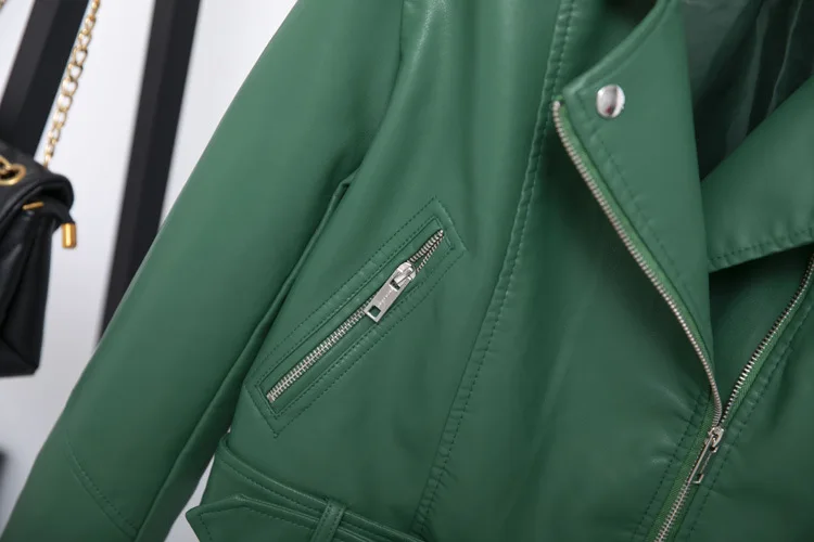Новинка 2019, женские кожаные пальто, весна-осень, приталенные пиджаки с длинным рукавом, Женские Короткие Зеленые мотоциклетные куртки-бомберы