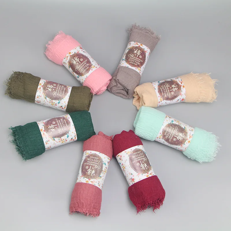 Шарф пузырьковый однотонныйхлопковый шарф с бахромой, Женский мягки...