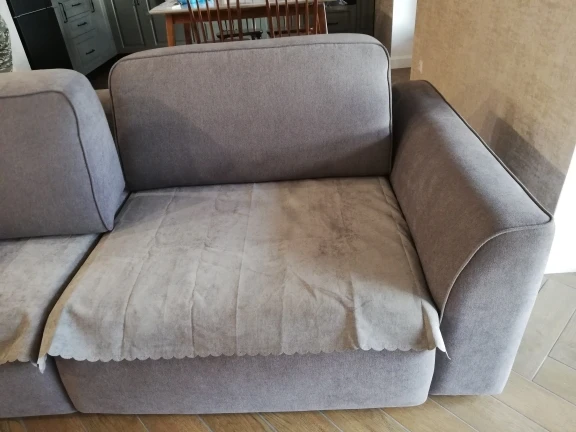 Серый цвет кажется темнее, чем вы видите на фотографии. Ткань, несмотря на то, что она имеет противоскользящую систему в своей части поддержки, движется, когда вы сидите на диване, создавая морщины, в зависимости от ткани.