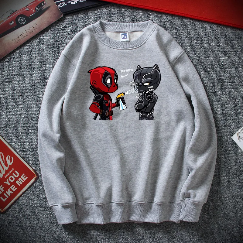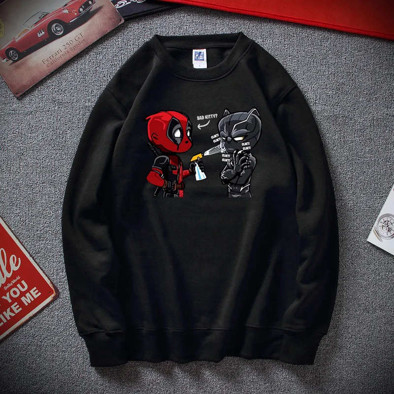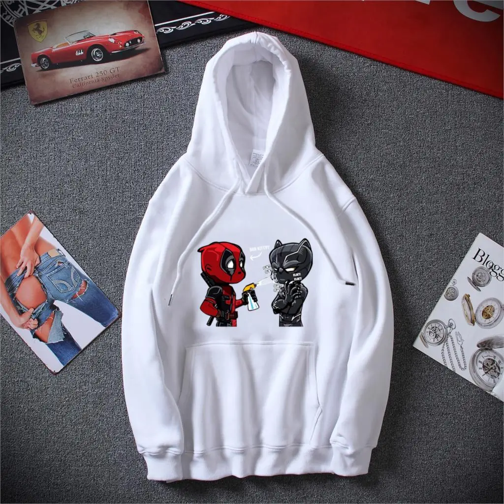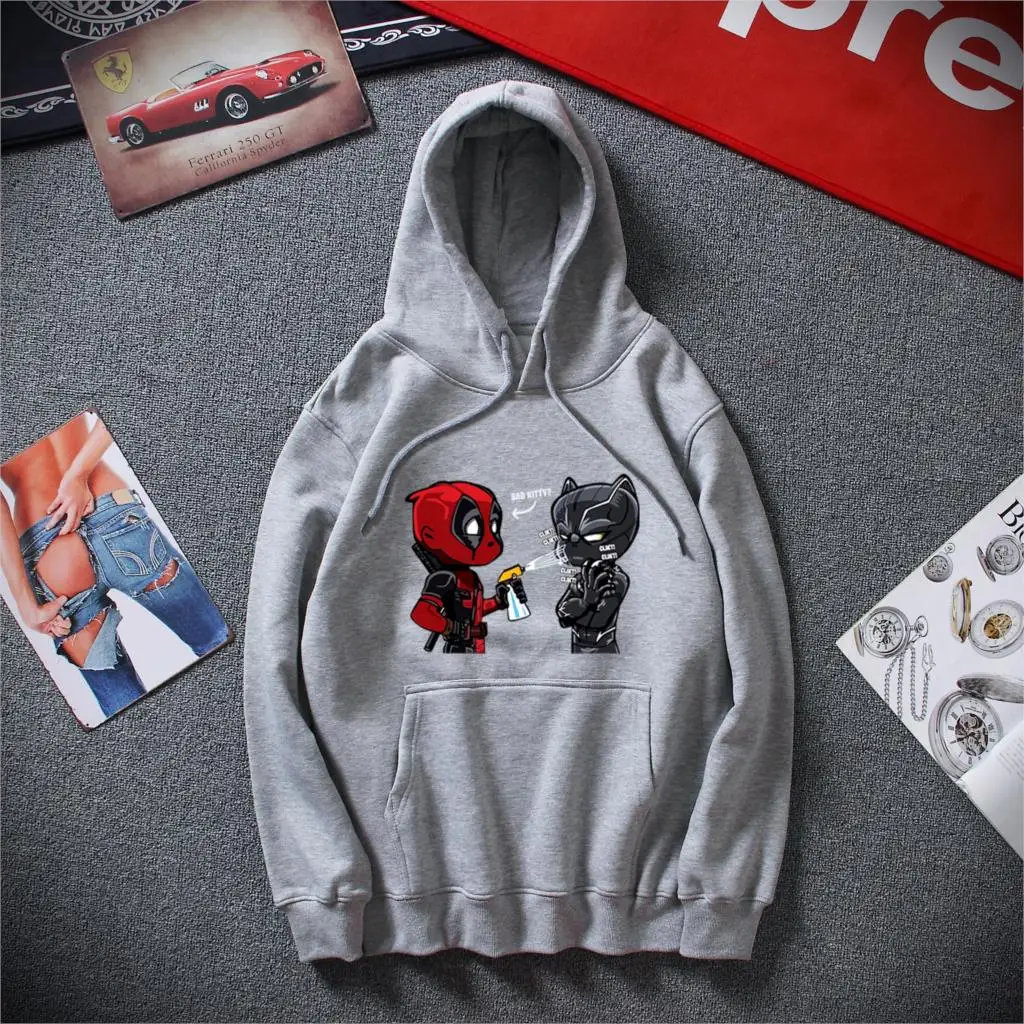 Новинка, зимняя уличная одежда, толстовка с капюшоном в стиле Дэдпул, худи в стиле унисекс с изображением черной Пантеры и плохой маленькой кошки, мужская Толстовка