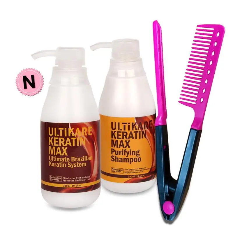 Самая дешевая Бесплатная расческа в подарок + 300 мл Ultikare бразильские кератиновые прямые волосы лечение + 300 мл Очищающий Шампунь Увлажняющий уход за волосами
