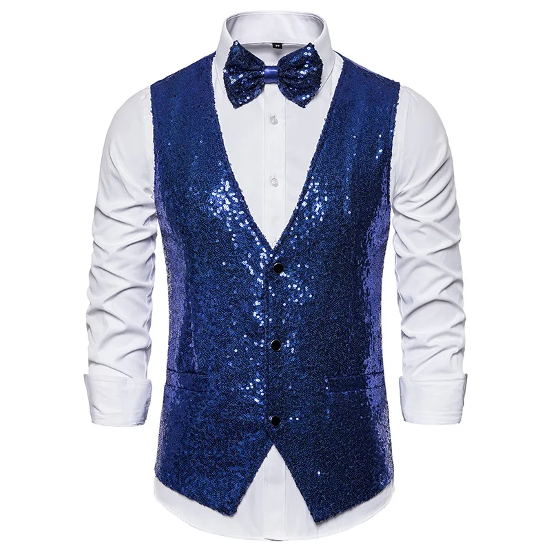 Блестящий ярко-синий жилет с блестками, мужской облегающий жилет с ...