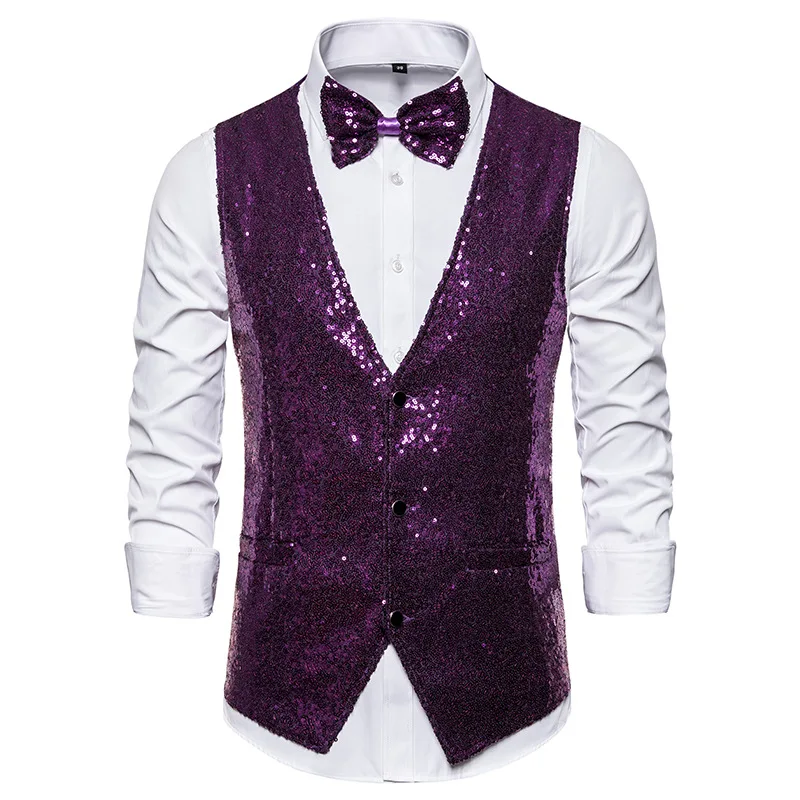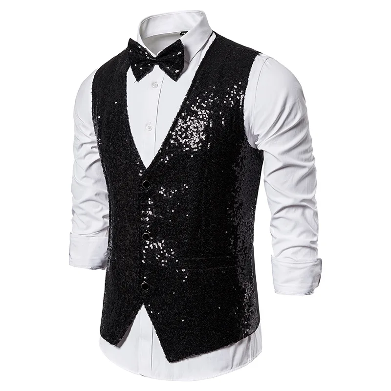 Мужской жилет с галстуком-бабочкой, с блестками, приталенный, для с...