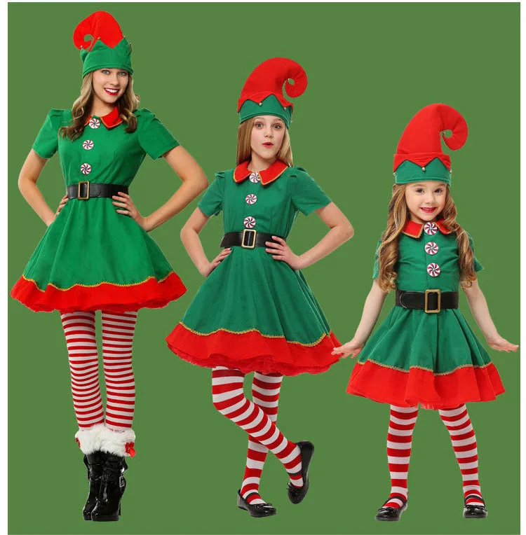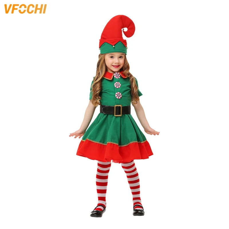 Новый Рождественский костюм эльфа VFOCHI для девочек и мальчиков, костюм на Хэллоуин, костюм Санта-Клауса для детей и взрослых, Семейный комплект одежды зеленого эльфа