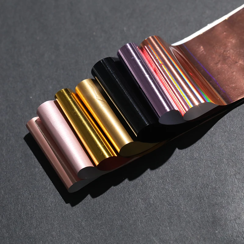 Блестящая Фольга для ногтей, переводная наклейка для ногтей, Радужная, розовая, золотая, шампанское, наклейка для ногтей, 7 цветовнабор