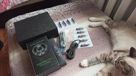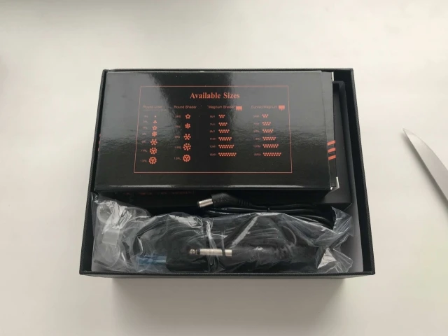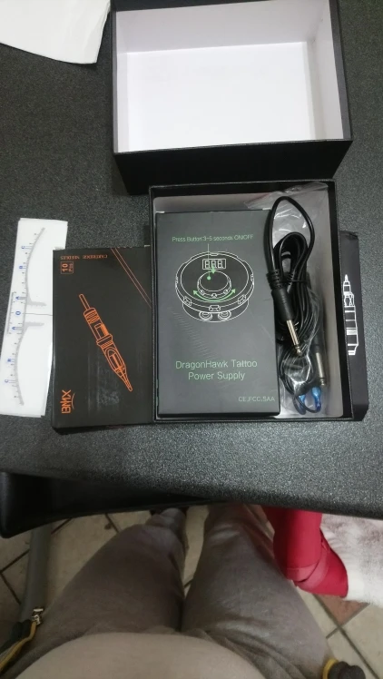 Машинка пришла за 14 дней, это ооочень быстро. Спасибо продавцу за небольние подарки в виде игл и колпачков для краски... Испробую машинку, отпишу результат...