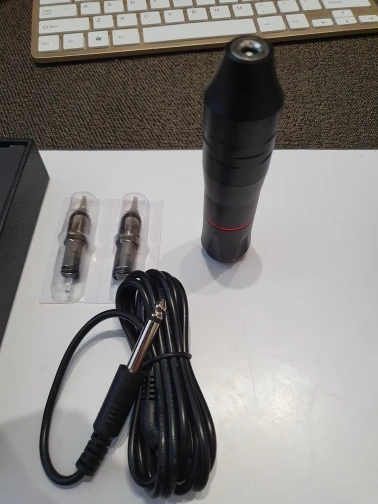 Я влюблен в эту ручку! Он легкий и отлично подходит для татуировок. Он немного трясется, если вы используете 10 В, но это довольно хорошо! Шрифт работает без педали, и я использую татуировочную ручку non stop! Также продавец потрясающий!