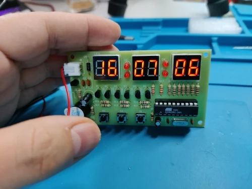 для тренировки в пайке отличный набор. есть таймер, будильник. но крону 9В съедает за сутки, ток не мерил.