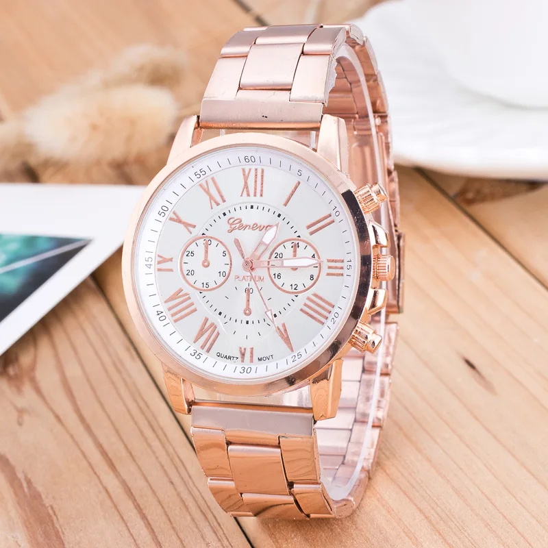 Женские повседневные кварцевые часы Geneva Rosy Gold, часы из нержавеющей стали с римскими цифрами, новинка 2019