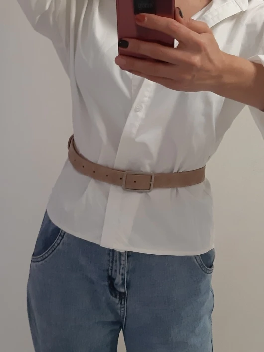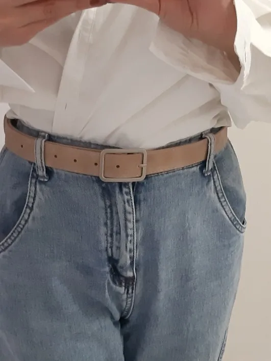 Текстура ремня красивая, атласная, и мне нравится матовая пряжка, так как блестящие пряжки часто выглядят липкими и дешевыми. Материал не выглядит очень прочным, но цена нормальная, и я думаю, что он прослужит около года.