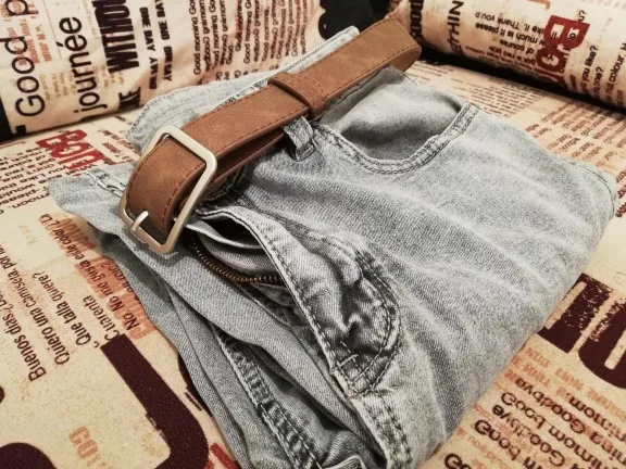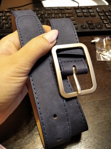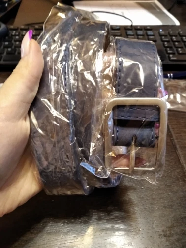 Выглядит ремень симпатично. На талию 63 см велик, нужно будет укорачивать или проделать ещё пару отверстий. Ремень имеет довольно неприятный запах, надеюсь выветрится со временем. На ощупь лицевая поверхность напоминает нубук, мягкая и бархатистая. Полная длина ремня 100см, ширина чуть меньше 3см. Продавец отправил посылку вовремя, без задержек.