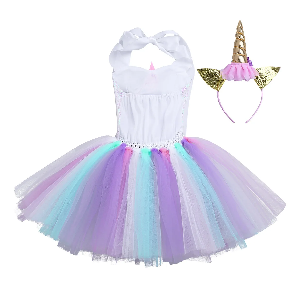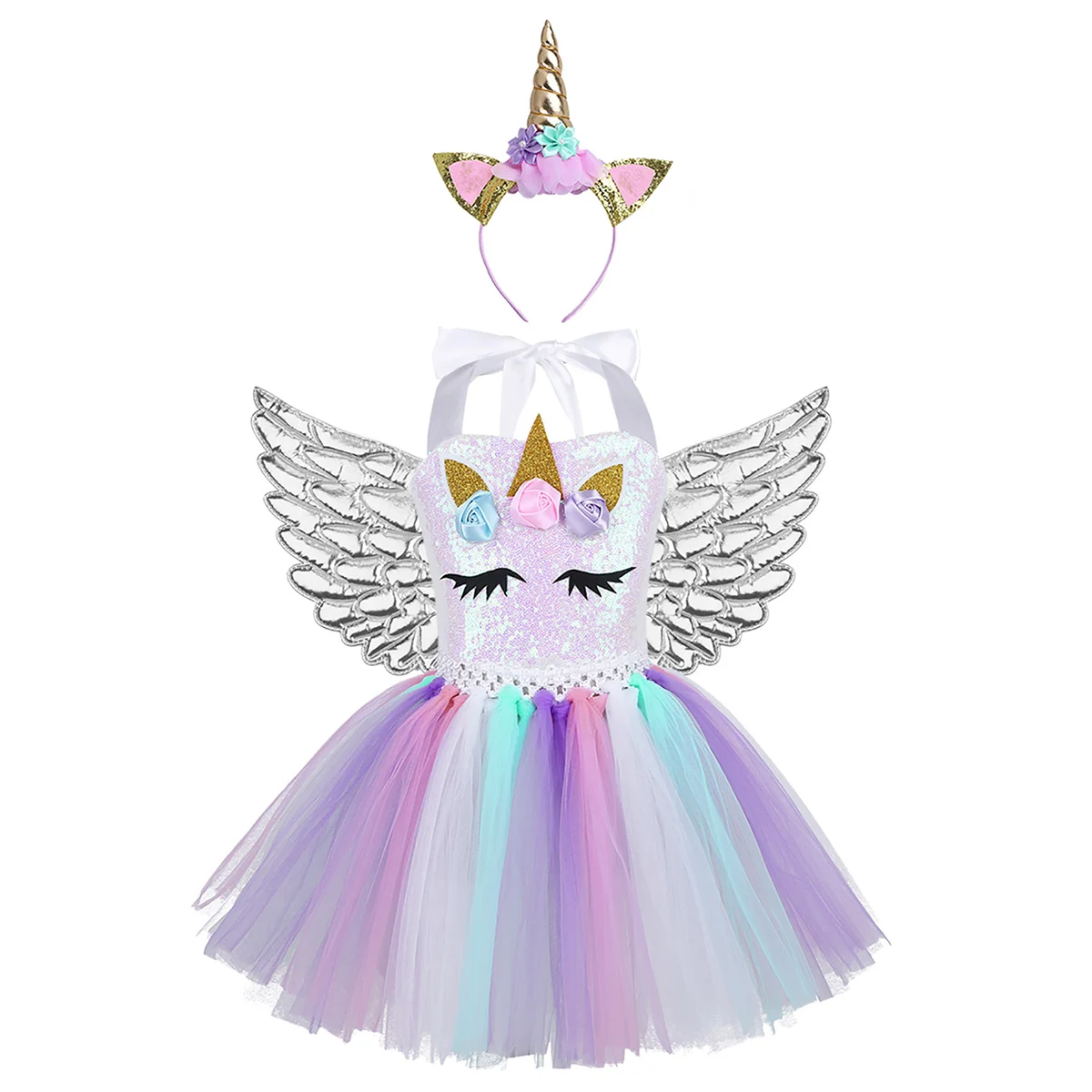 Особенности: Платье изготовлено из полиэстера и сетчатого материала, ручная стирка. Таблица размеров означает возраст для девочек, но только для общего руководства. Регулируемый дизайн с лямкой на шее. Топ с лифом спереди украшен блестящими блестками, объемными цветами и аппликацией в виде мультяшных животных с подкладкой. Сзади на резинке. 1 многослойная разноцветная сетчатая юбка-пачка прикрепляется к талии. Поставляется с подходящим обручем для волос и крыльями. Очаровательный и милый комплект для вашей девочки. Подходит для Хэллоуина, косплея, вечерние темы, ролевых игр, нарядов, фотографий, праздников и т. д.