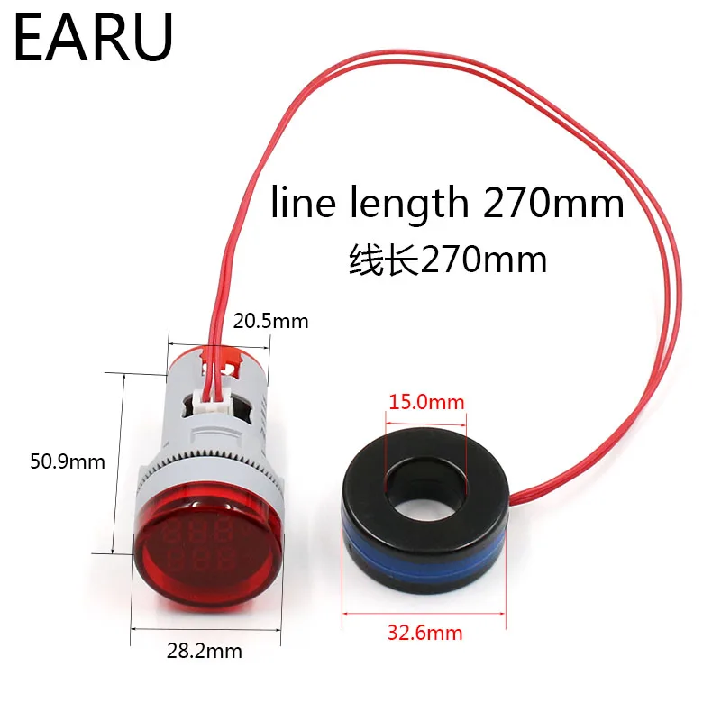 Круглый цифровой вольтметр, амперметр, 22 мм, 20-500 В переменного ...