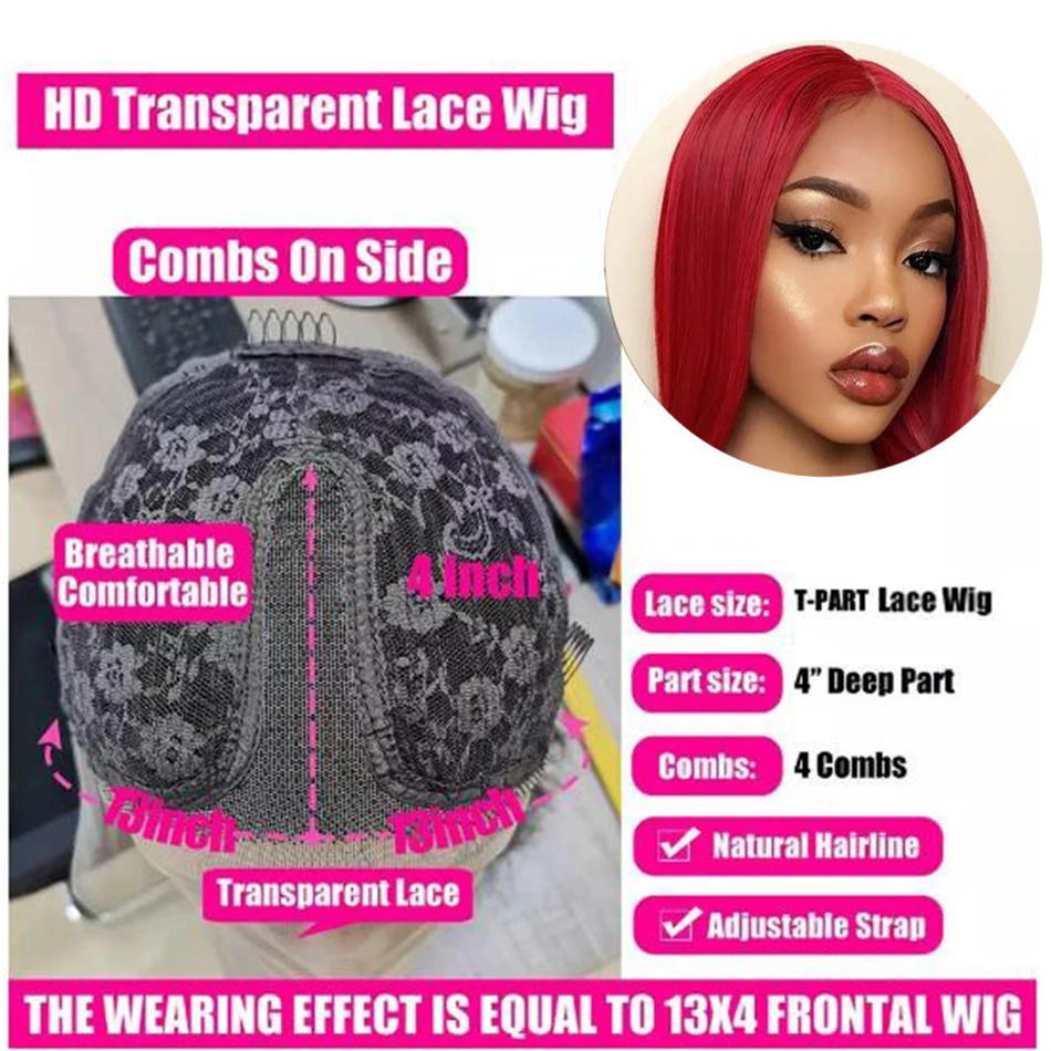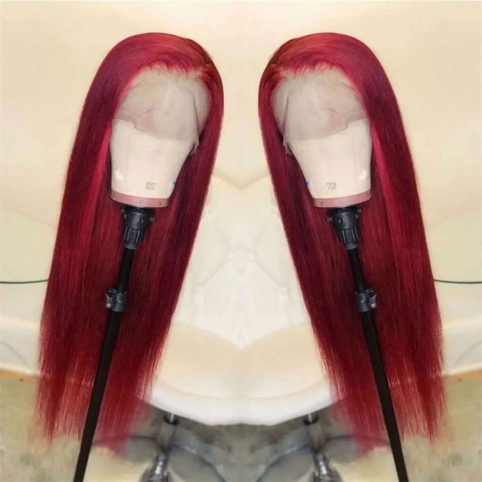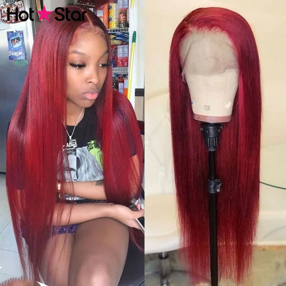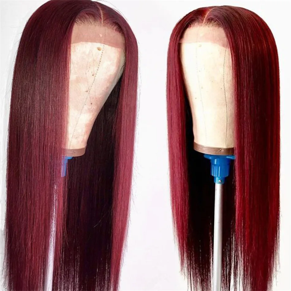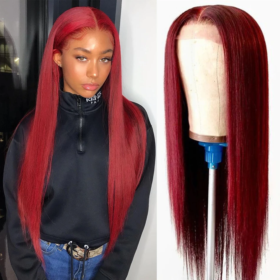 Парики из натуральных волос бордового цвета, красные прямые парики из натуральных волос для женщин, парик из бразильских волос Реми, 150%
