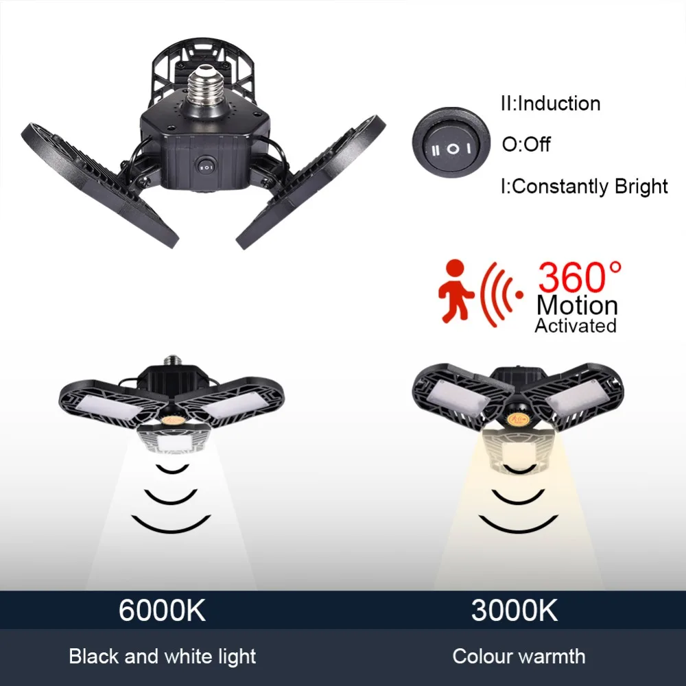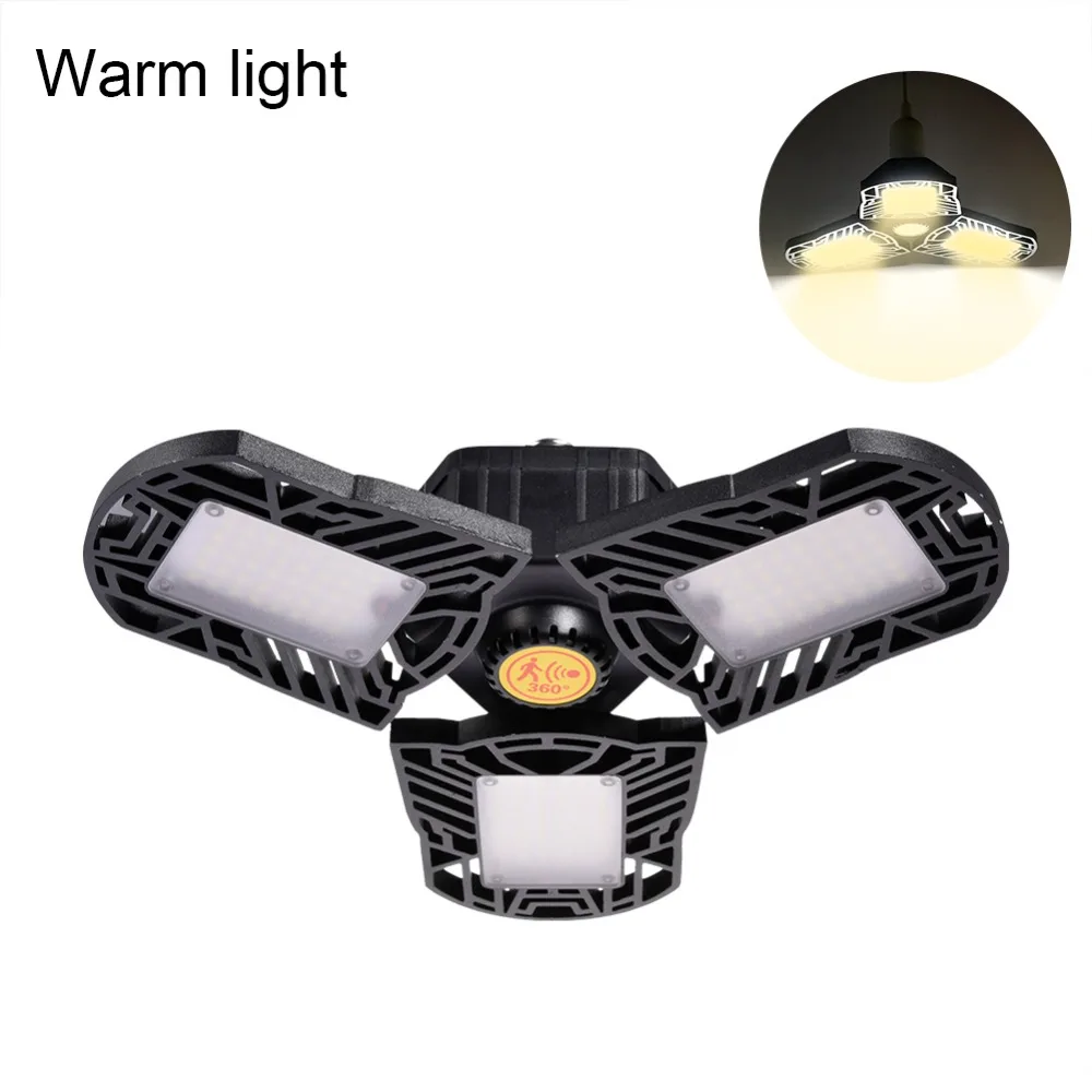 Светодиодный светильник для гаража с датчиком, 60 Вт, E26 E27, складной потолочный светильник, высокий светильник для дома, склада, студии, освещение для мастерской, винного погреба