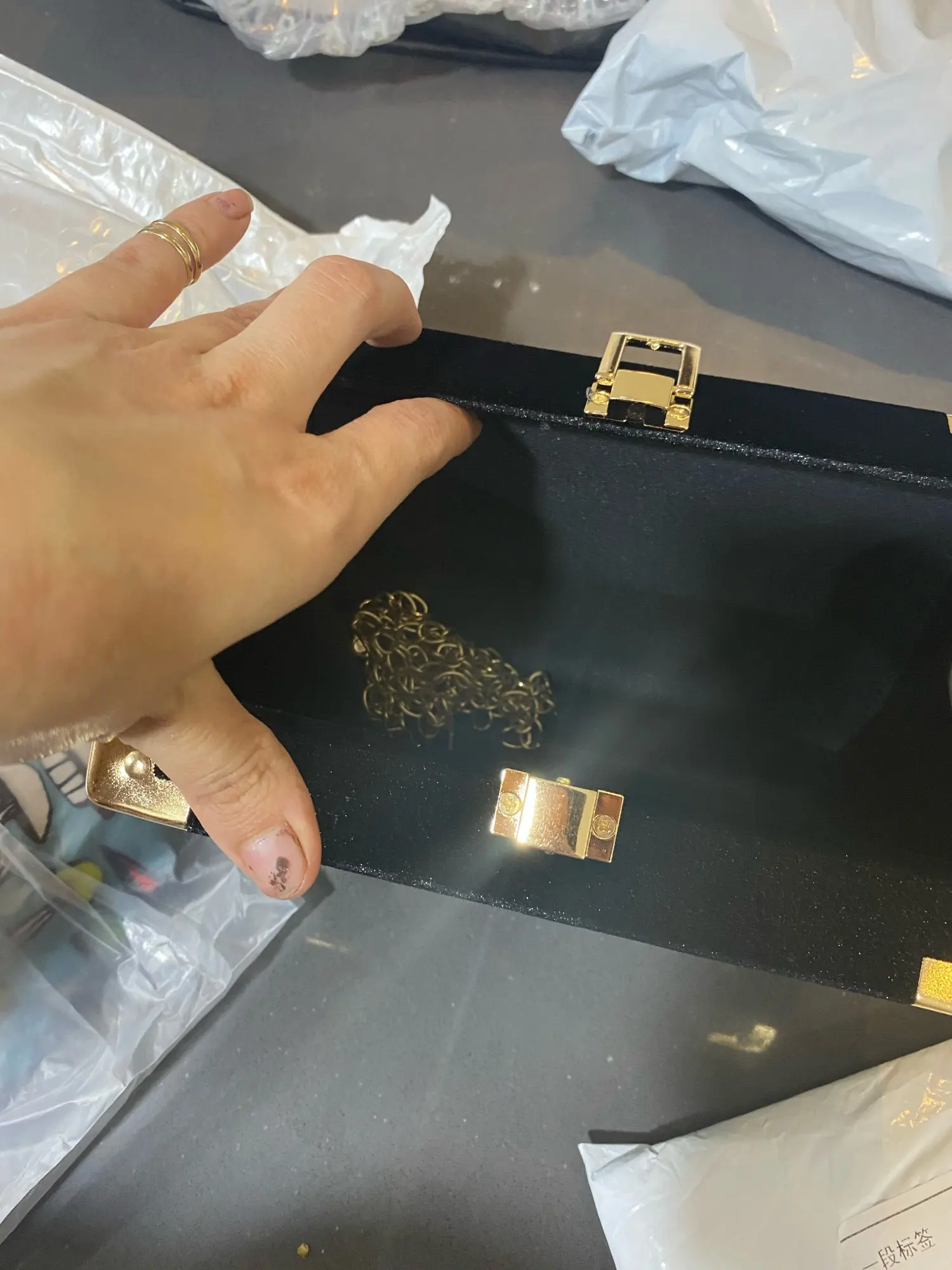 Доставка молниеносная, 8ого заказала, 16ого уже пришло впервые такое! Сумочка огонь, качество, все ровно красиво, вышивка достойная. Цепочка дешевит, но её можно поменять или вообще носить как клатч - размер позволяет. В общем я очень довольна, брала в пару к нг платью