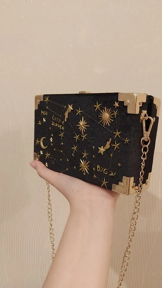 Металлическая сумочка в форме коробки с значком, кошелек, женская черная вечерняя сумка-клатч на цепочке, милая сумка через плечо, сумка-мессенджер через плечо