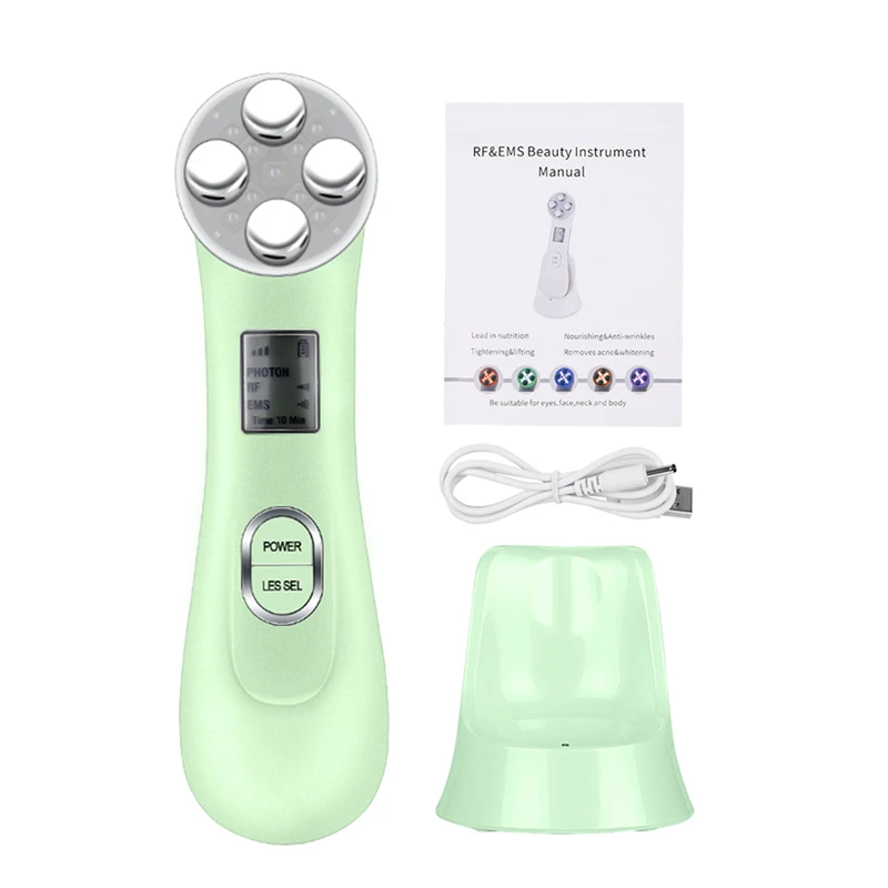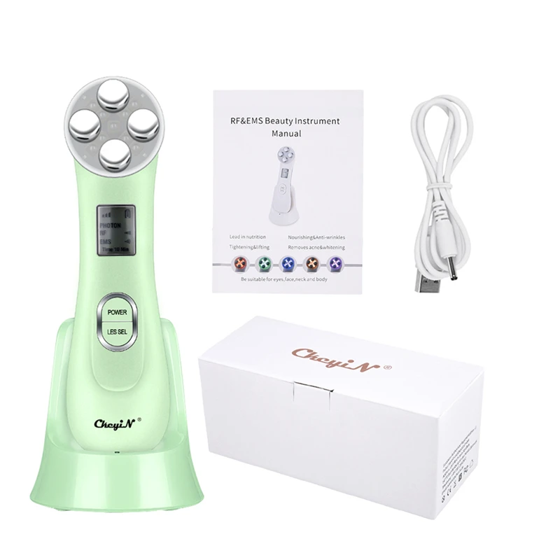 Особенности:Этот прибор для красоты использует ток EMS, технологию электропорации, радиочастотную и светодиодную,Что это многофункциональное, так что оно может решить многие проблемы с кожей.В первую очередь. Ток EMS может активировать клетки и создать новый коллаген, наконец, сделать вашу кожу более твердой, более энергичной и упругой, улучшить мелкие морщинки на поверхности кожи.Во-вторых. Технология электропорации может создать разрыв между клетками в течение короткого времени, что делает кожу поглощать больше средств по уходу за кожей.Третий. Радиочастота RF может облегчить боль в мышцах и усталость кожи, облегчить напряжение кожи, уменьшить покраснение, отек и боль, и сопротивляться повторному росту акне.Четвертый. Светодиодные лампы имеют розовый, желтый, зеленый, синий и розовый свет вспышки шесть режимов. Этот светодиодный свет может отбеливать кожу, осветлять тон кожи, способствует регенерации коллагена, подавляет чрезмерную продукцию меланина и сужающихся пор и т. Д.Продукт имеет 5 уровней интенсивности на выбор,Вы можете настроить его в соответствии с типом кожи и личными предпочтениями.Этот косметический инструмент не токсичен, имеет боковый эффект, безболезненный, подходит для всех типов кожи.
