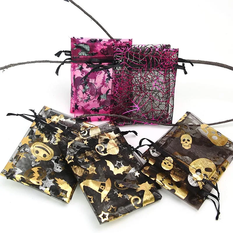 9*12 см креативный подарок на Хэллоуин Сумка паук Тыква призрачная летучая мышь Бронзовый ШНУРОК МАРЛЯ мешок 50 шт