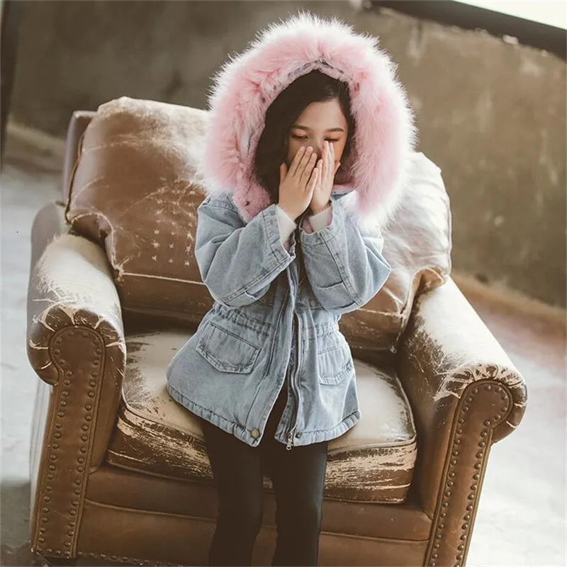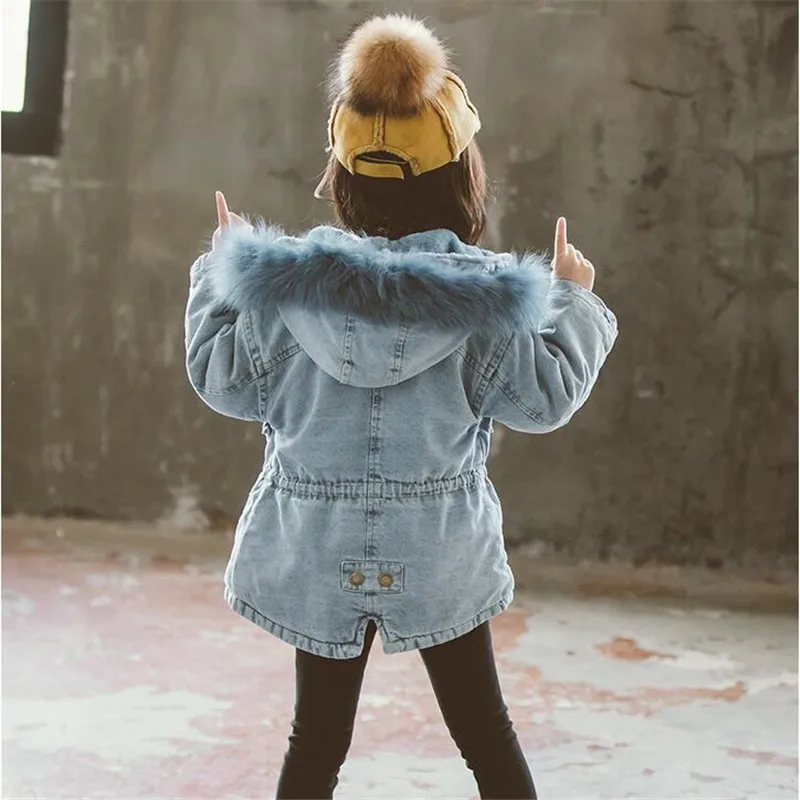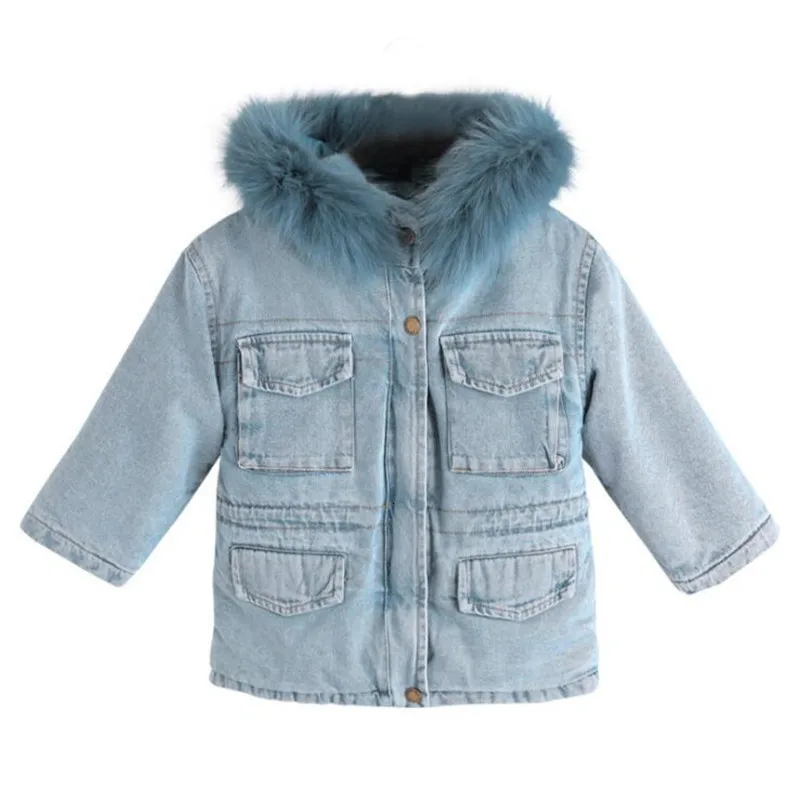 OLEKID2019 г. Зимняя джинсовая куртка для маленьких девочек, бархат...